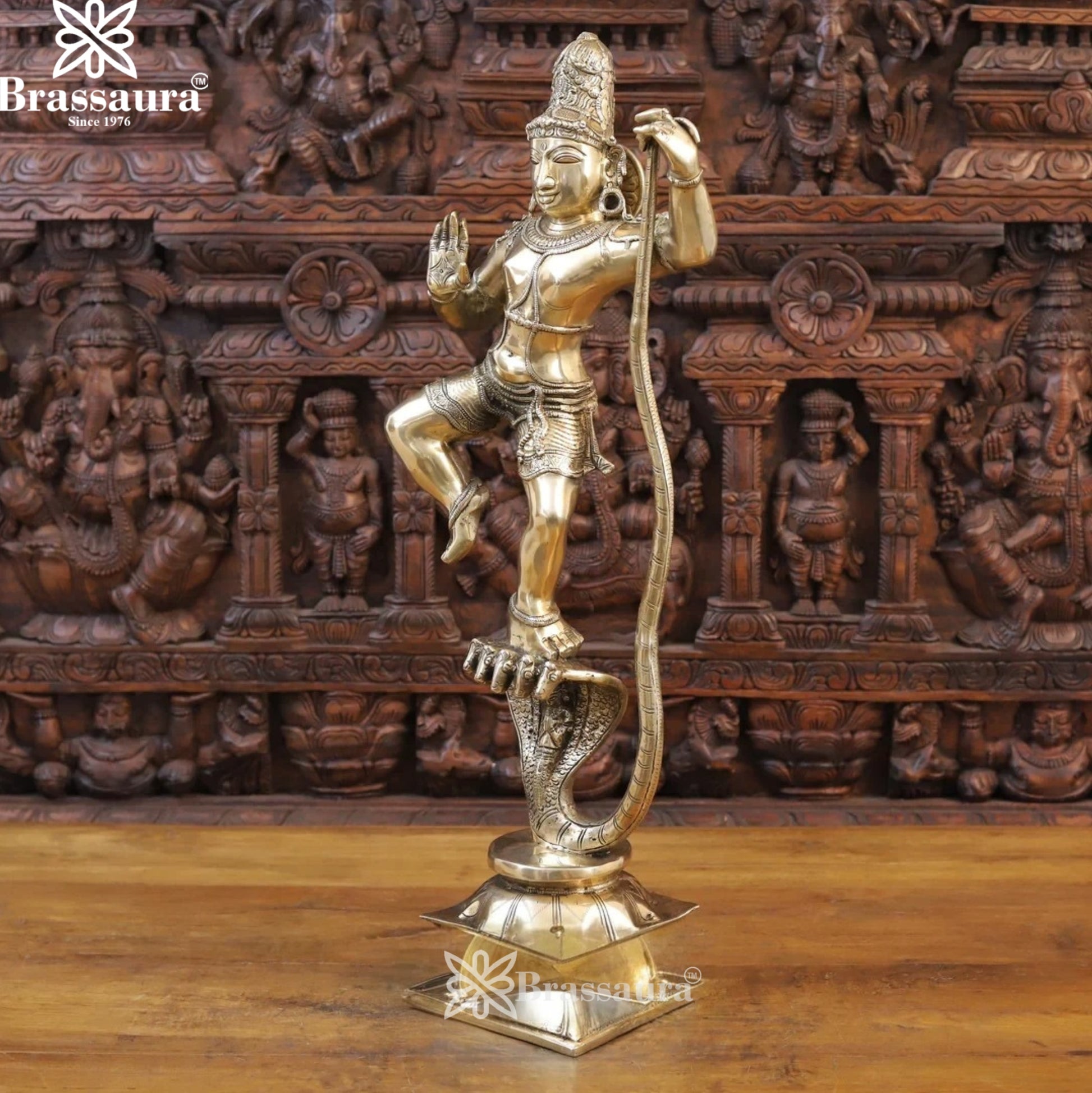 Celebrate the divine joy and grace of Lord Krishna with this beautifully handcrafted Brass Dancing Krishna Murti. Capturing Krishna in a dynamic dance posture, this exquisite idol radiates energy, bliss, and spiritual charm. Crafted from premium quality brass with fine detailing, it adds an aura of movement and liveliness to any sacred or living space.