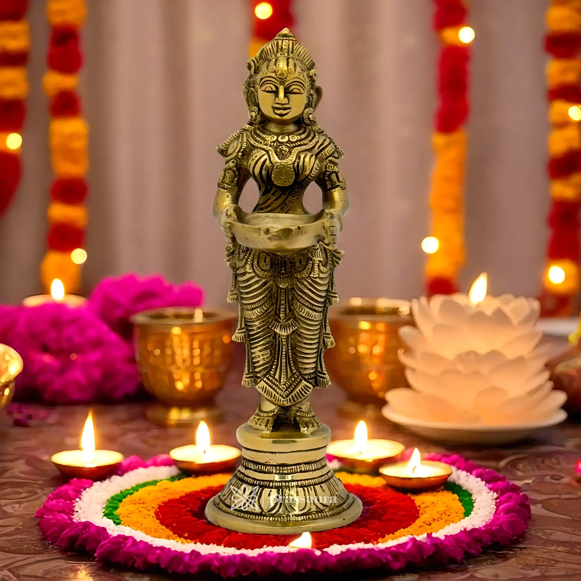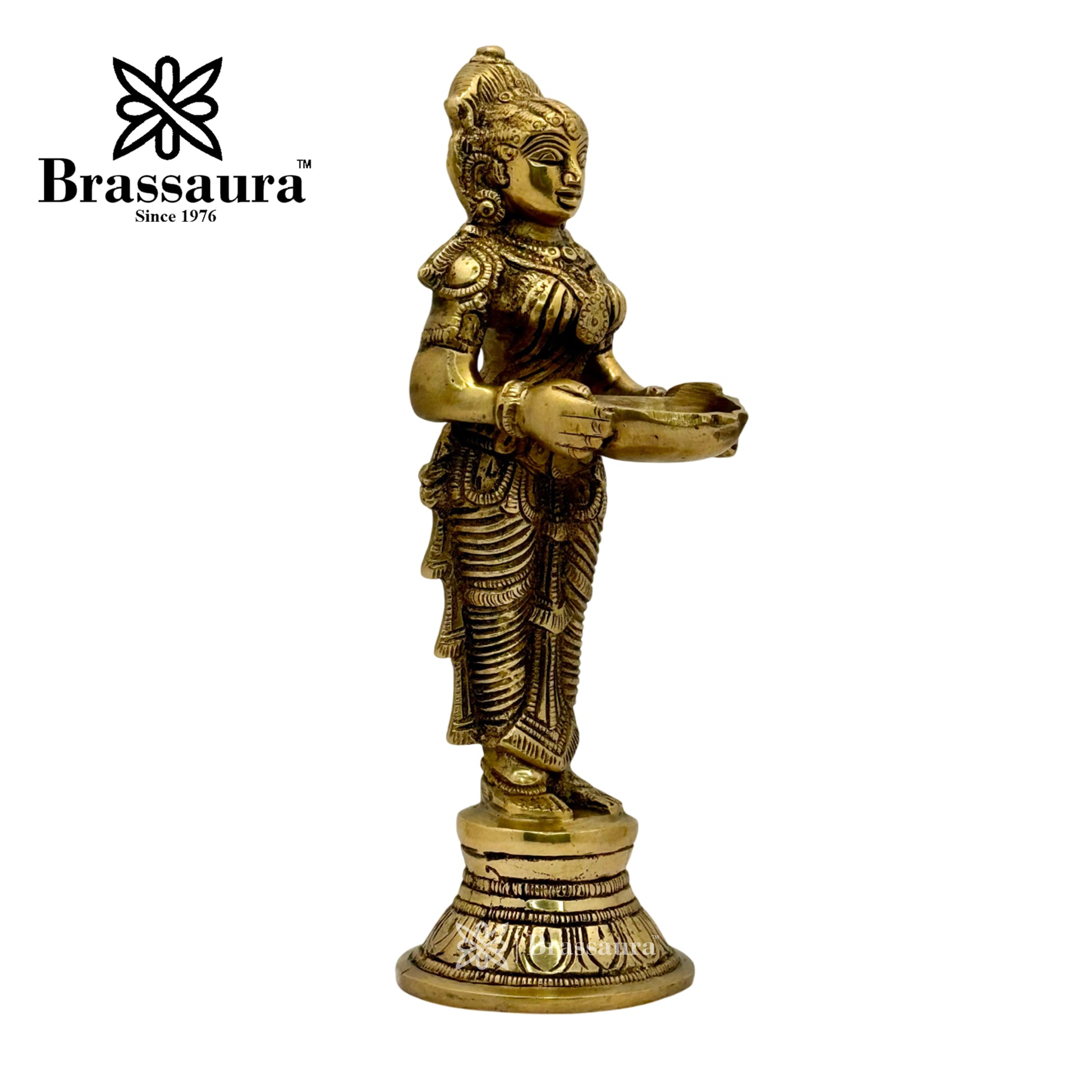 Brassaura™ Brass Deep Laxmi Idol – Height 11.2 Inches & Weight 1.7 Kgs | Home & Puja Décor