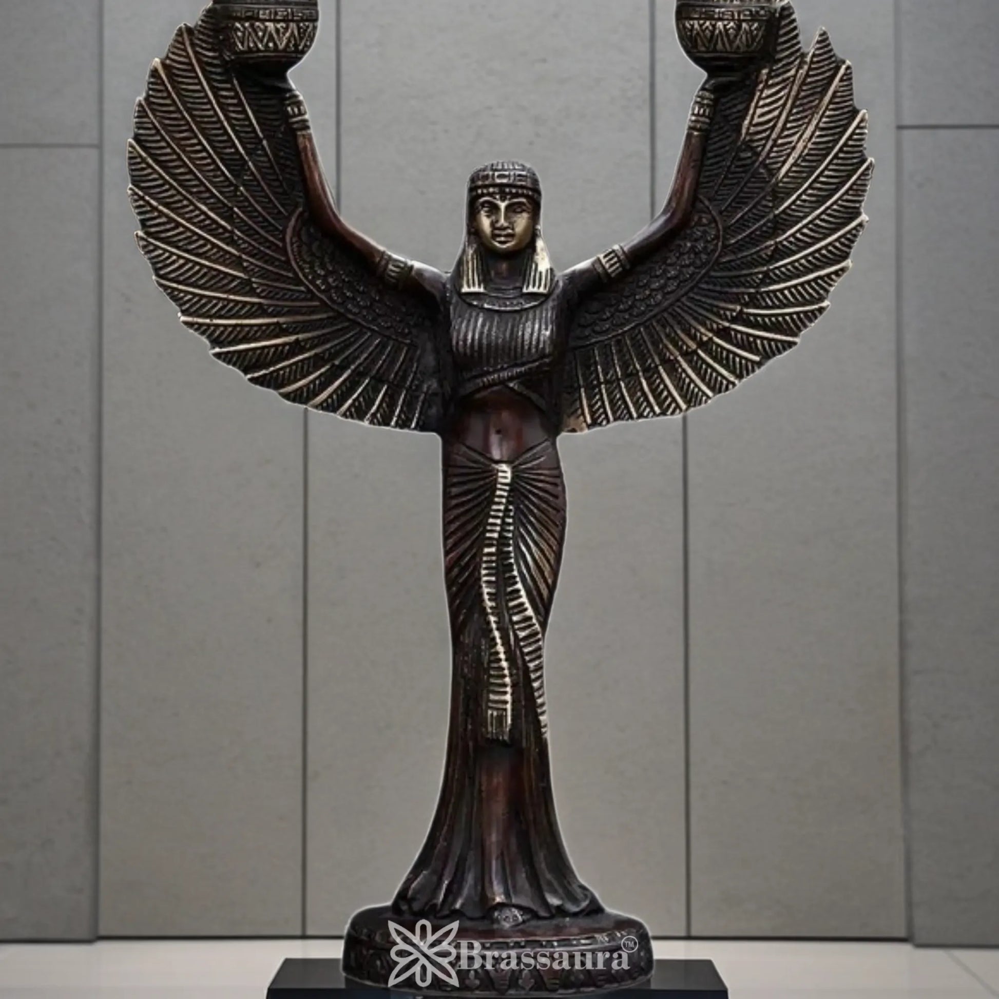 Brass Egyptian Lady Diya Stand For Home Décor And Gift Items Weight 1.8 kg Height 11.5 Inch