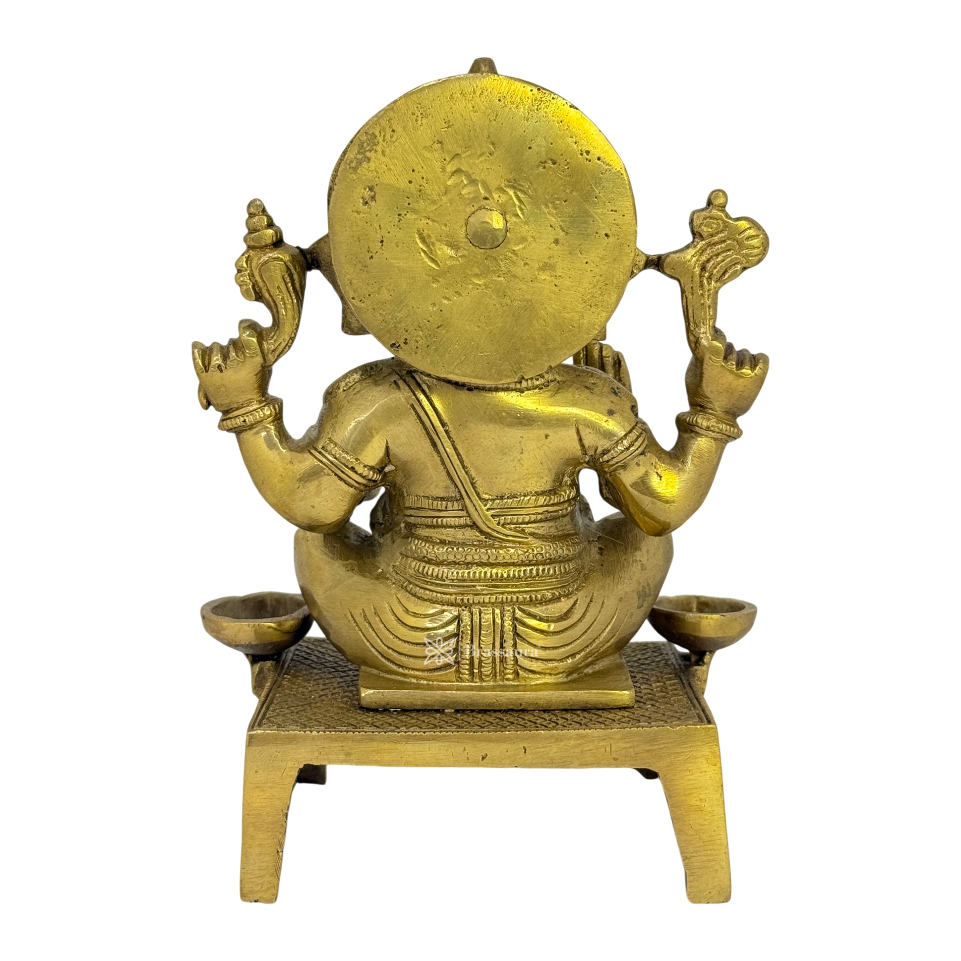 Brassaura™ Brass Ganesha Chowki Statue – Height 7.5 inches & Weight 2.35 kgs | Ganpati Diya Murti for Home & Pooja Room