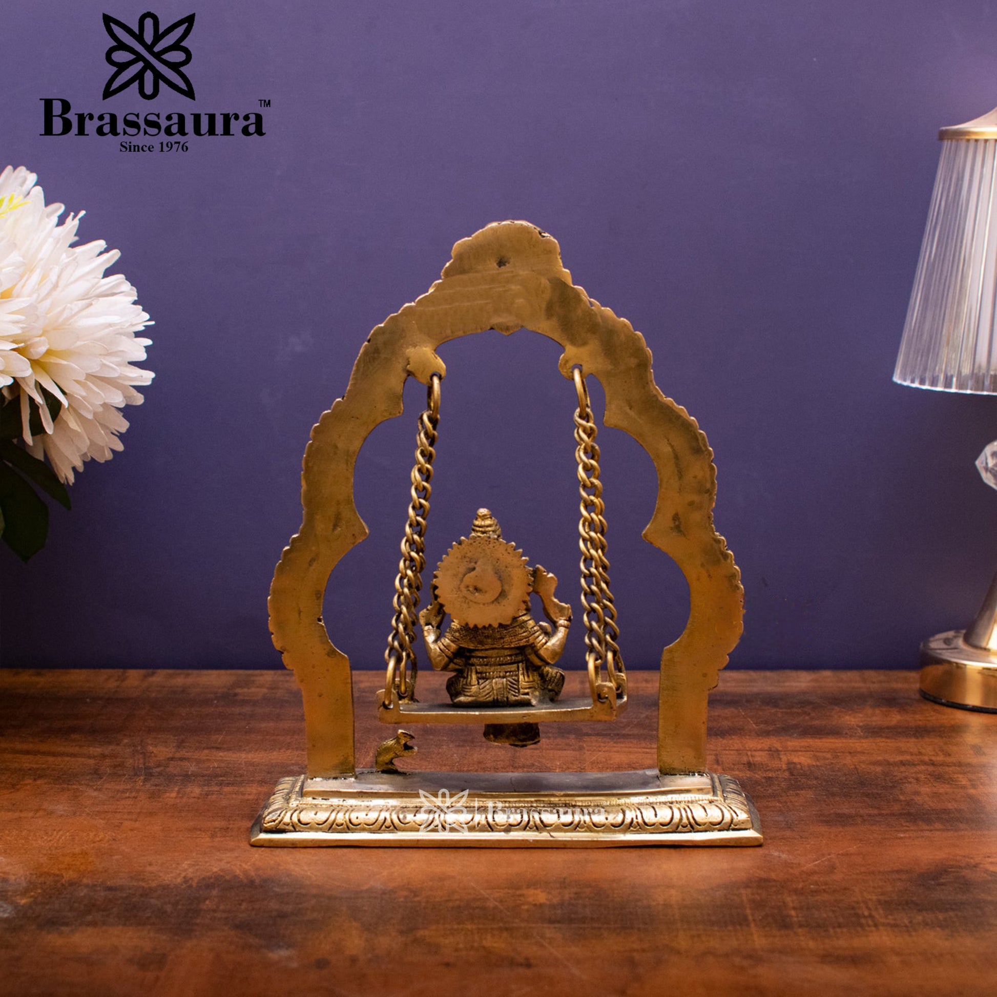 Brassaura™ Brass Ganesha Jhula Idol for Home and Decor | Weight 1.7 Kgs | Height 9 Inches