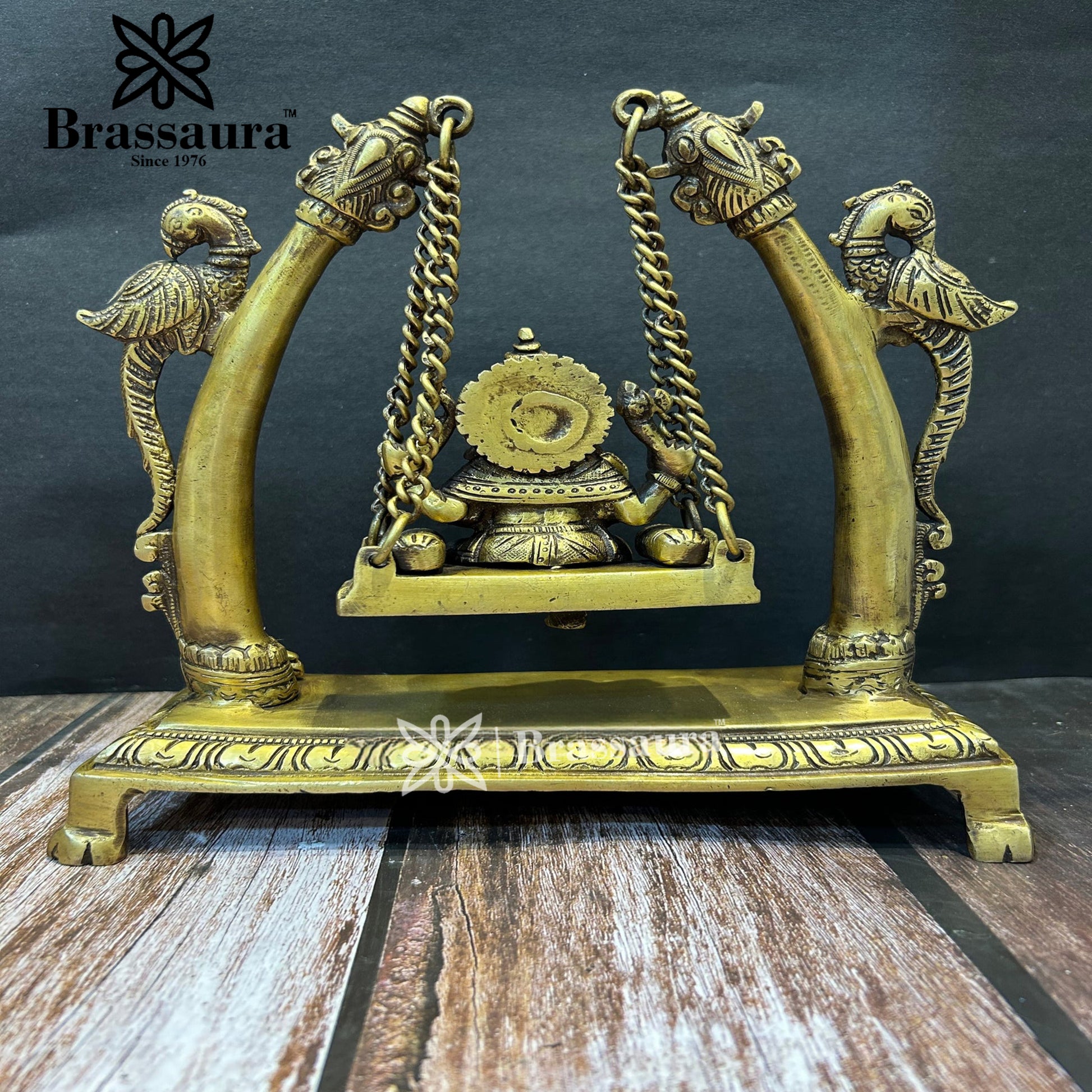 Add divine charm to your home with this Brass Ganesha Jhula Idol. Handcrafted from pure brass, it features Lord Ganesha seated gracefully on a swing, making it a beautiful centerpiece for pooja rooms or home décor.