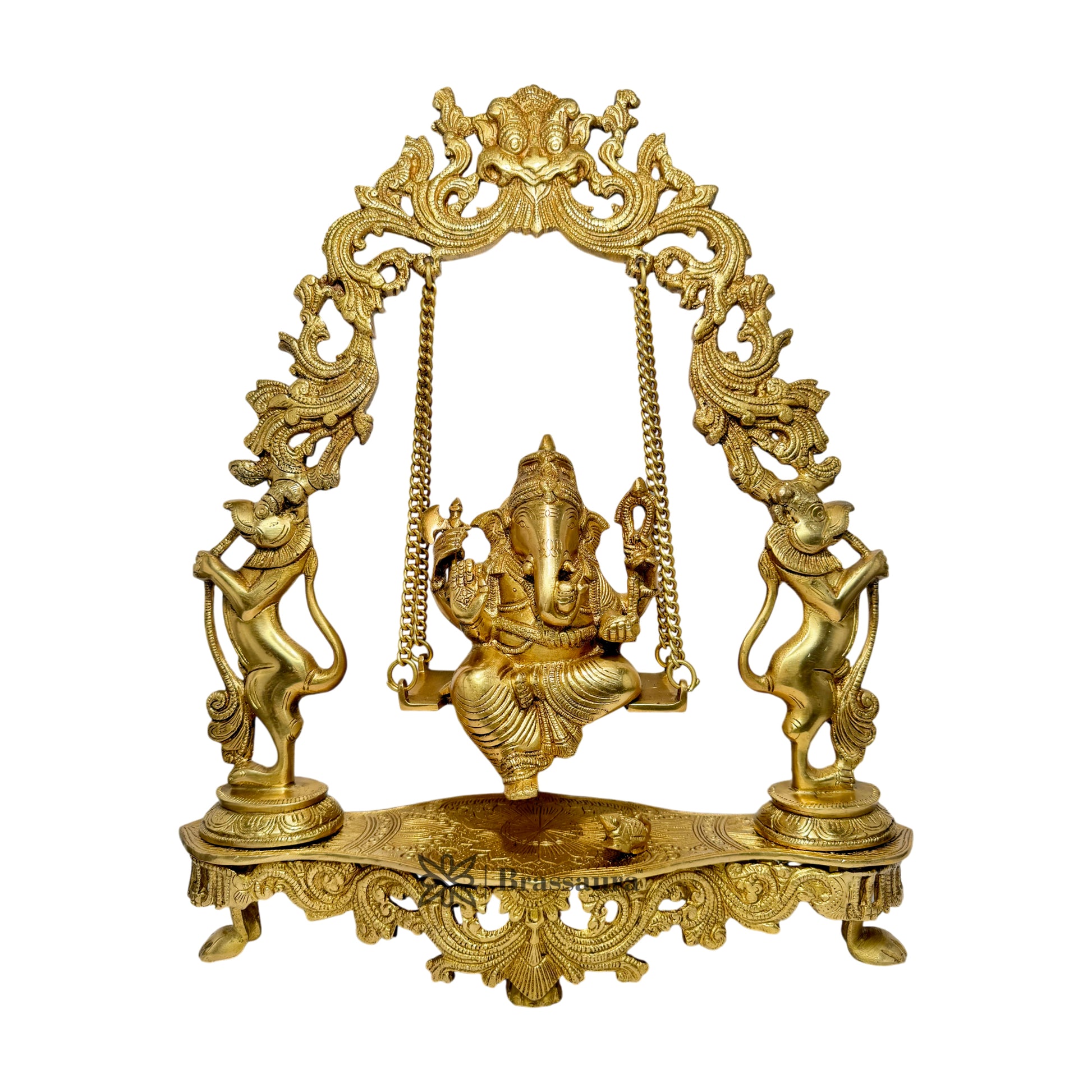 Brass Ganesha Jhula Statue For Home Decor Weight 7.45 Kg And Height 55 Cm