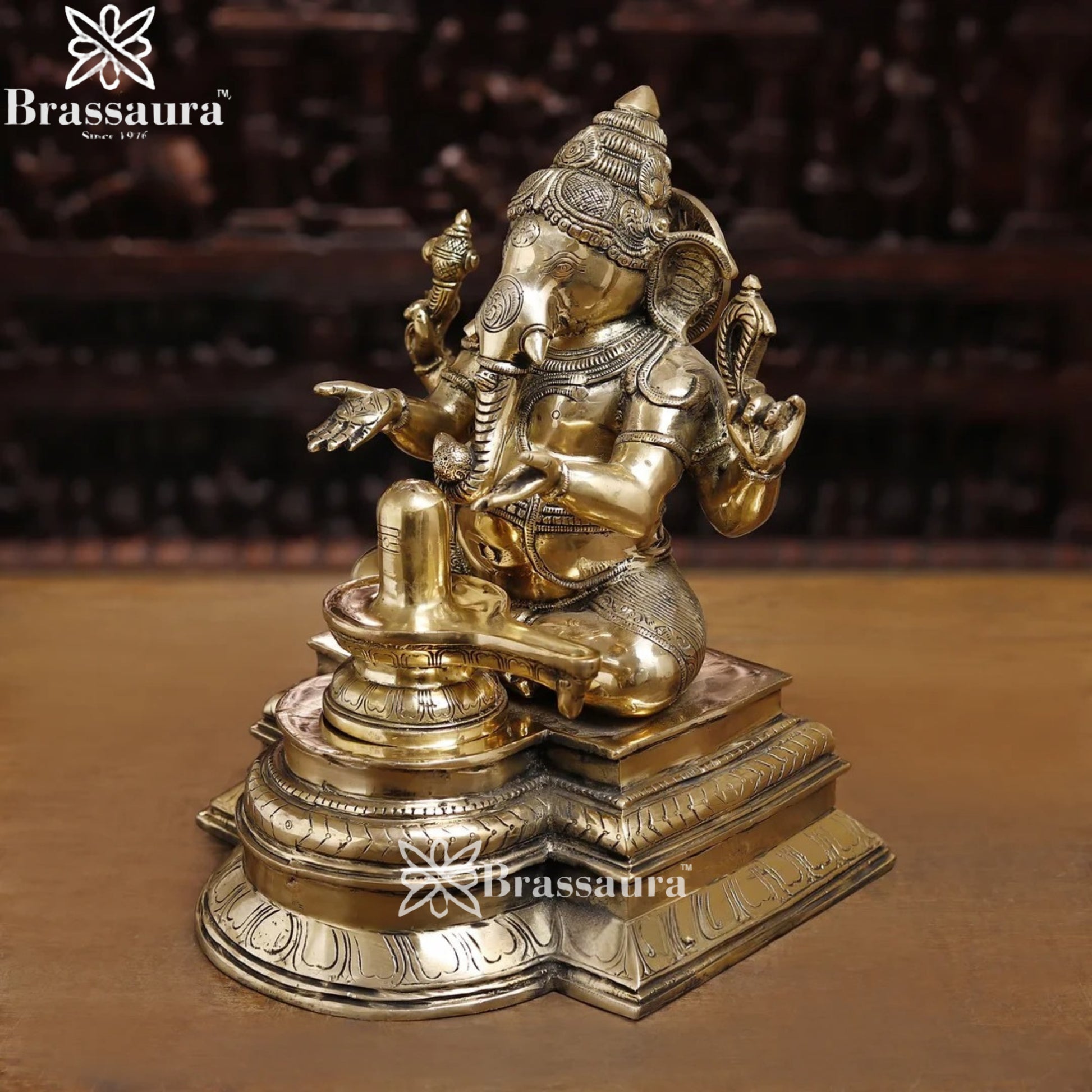 Brass Ganesha & Shivling – 14.5 Inch | 15.8 Kg