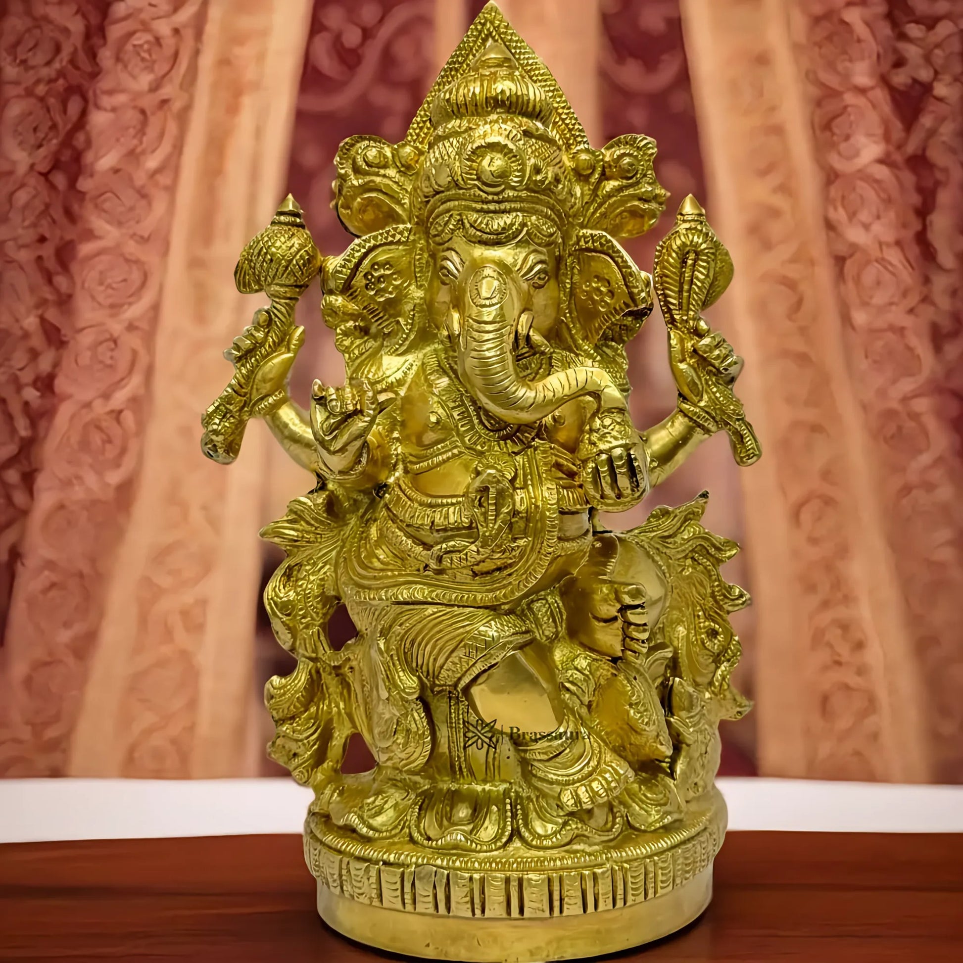 Brassaura™ Brass Ganesha Statue – Height 9.4 inches & Weight 3.17 kgs | Ganpati Murti for Home & Pooja Room