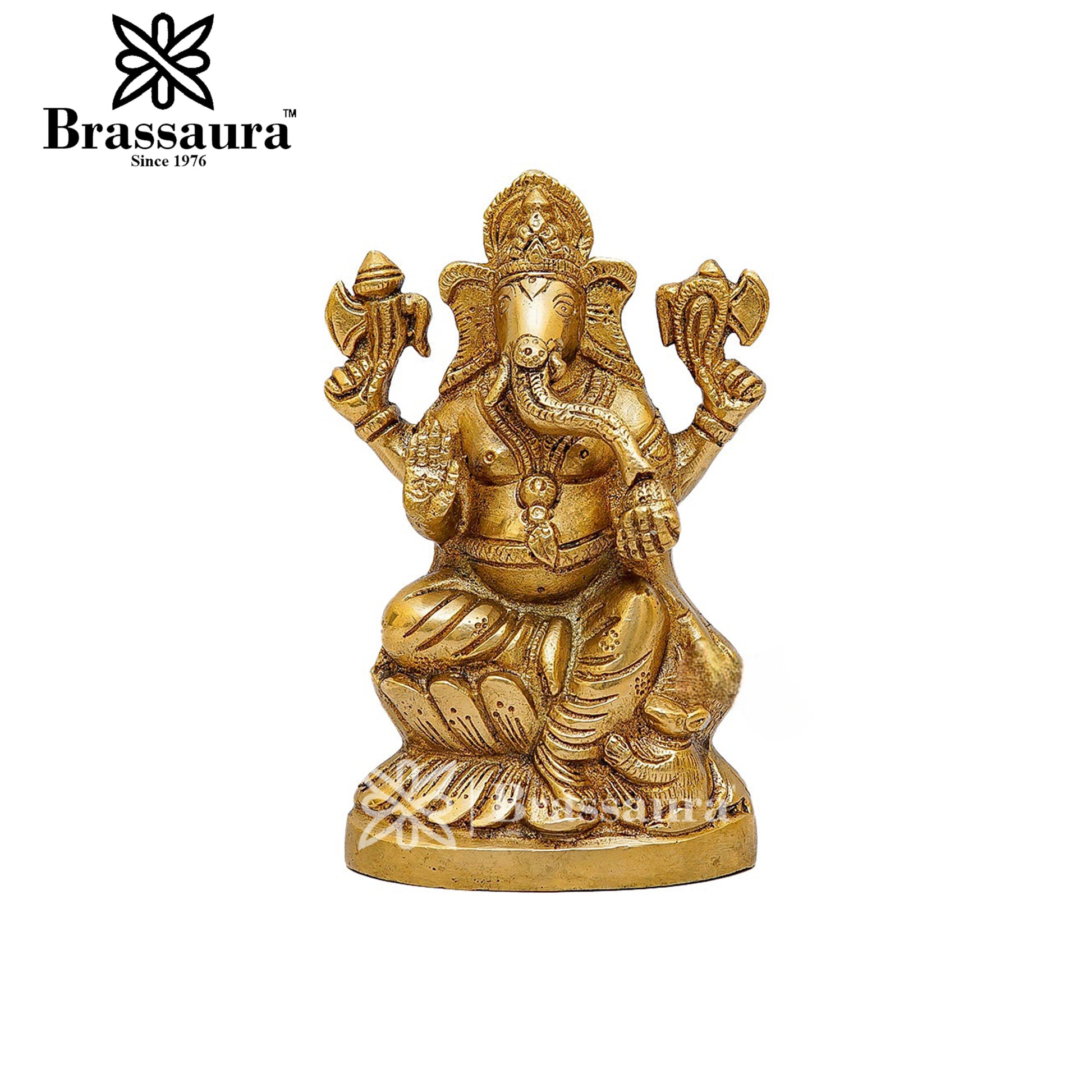 Brassaura™ Brass Ganesha Idol for Home and Decor | Weight 1.1 Kgs | Height 5.8 Inches