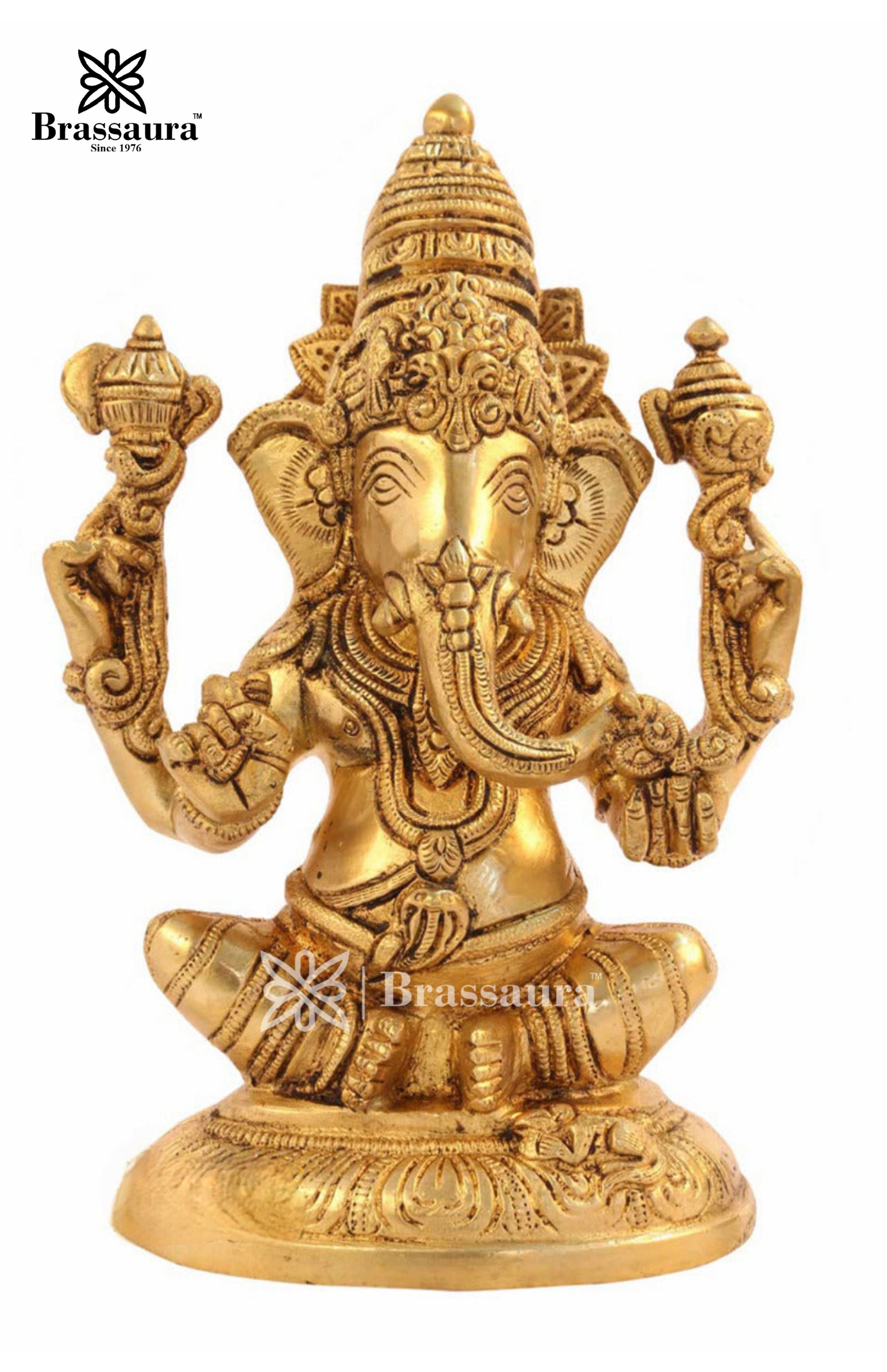 Elevate the ambiance of your space with this beautifully crafted Brass Ganesha Statue. Meticulously designed, this idol embodies wisdom, prosperity, and good fortune, making it a perfect addition to your home décor or a thoughtful gift for loved ones. Whether placed in your living room, puja space, or office, Lord Ganesha's divine presence brings positivity and blessings.