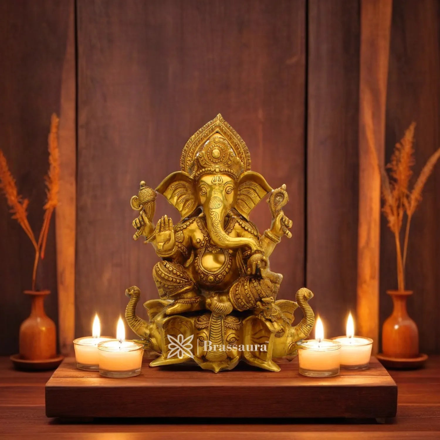 Brass Ganesha Statue For Home Decor And Gift Item Weight 16.7 Kg And Height 17 Inch