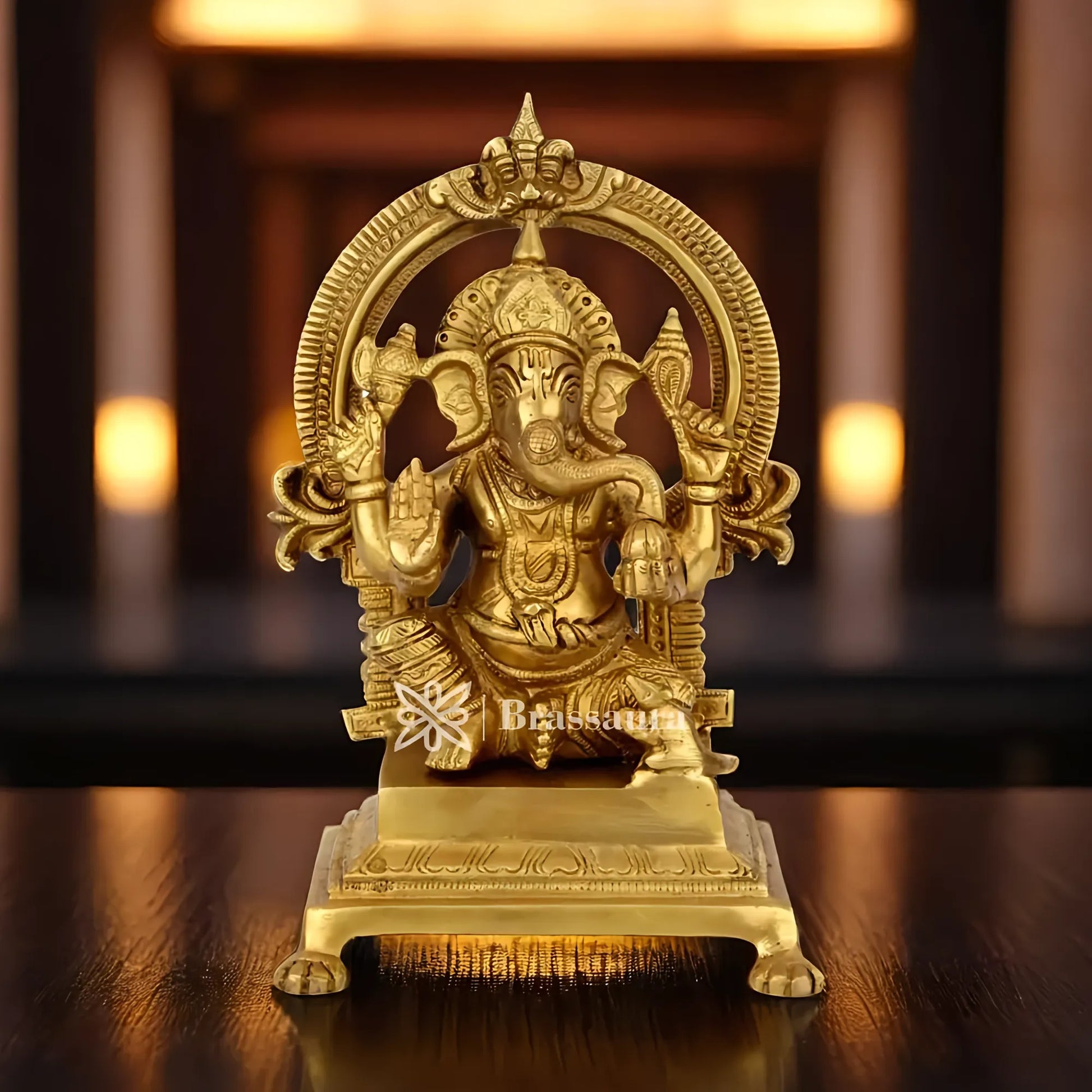 Brassaura™ Brass Ganesha Statue | Handcrafted Vinayaka Idol for Home & Décor | Height 9 Inches & Weight 2.5 Kgs