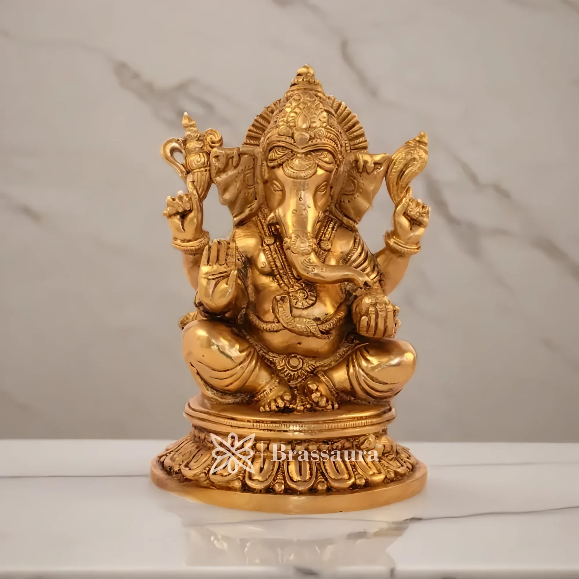 Brassaura™ Brass Ganesha Statue – “Symbol of Auspiciousness” | Height 8 Inches & Weight 2.8 Kgs