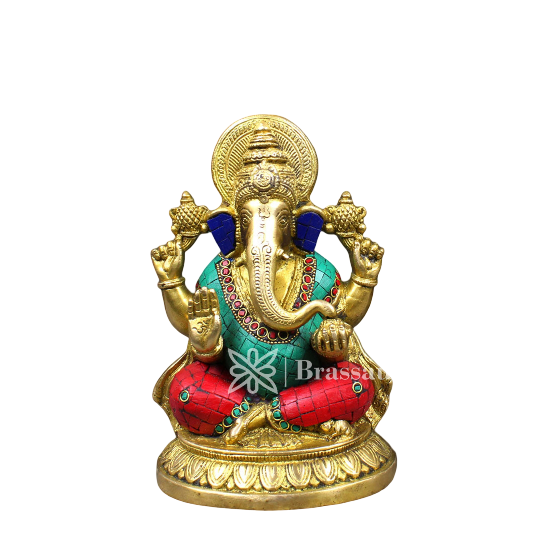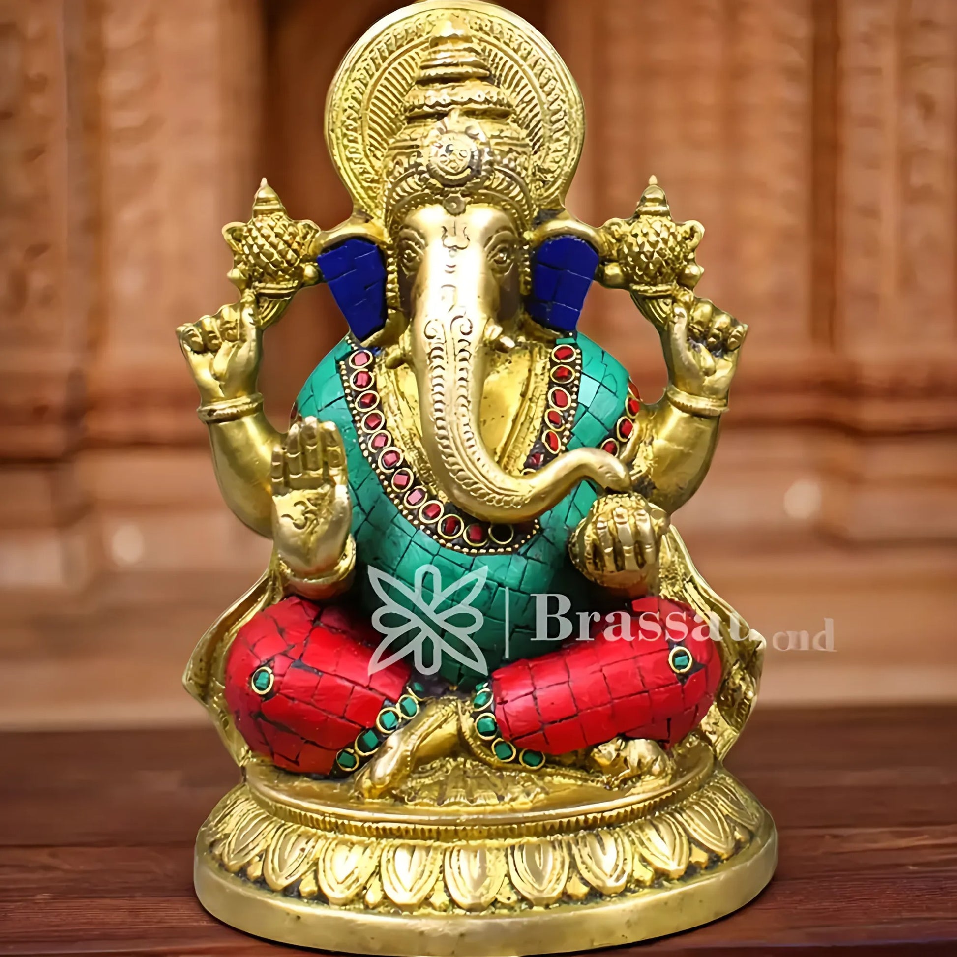 Add divine elegance to your home with this handcrafted Brass Gem Stone Work Ganesha Idol. Adorned with colorful gemstone detailing and intricate craftsmanship, this statue radiates spiritual positivity and artistic charm.
