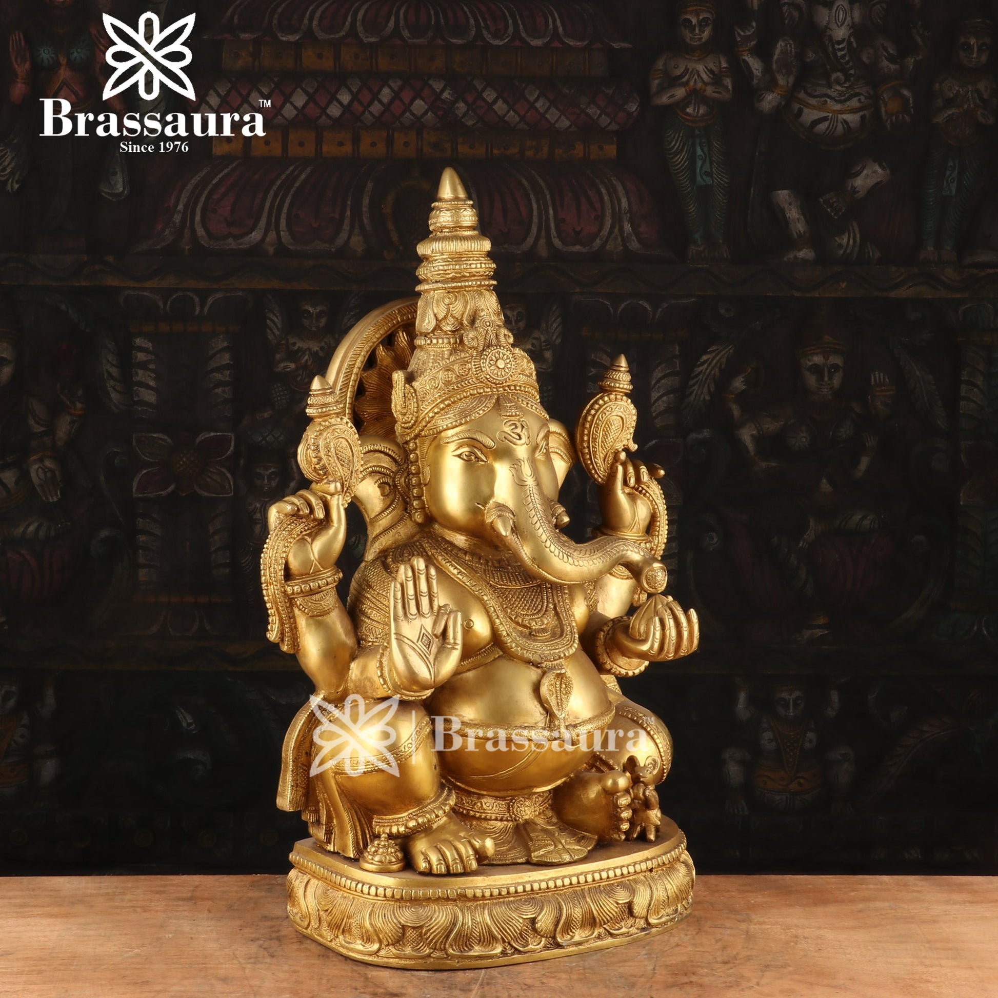 Brassaura™ Brass Ganesha Idol for Home and Decor | Weight 23 Kgs | Height 20 Inches