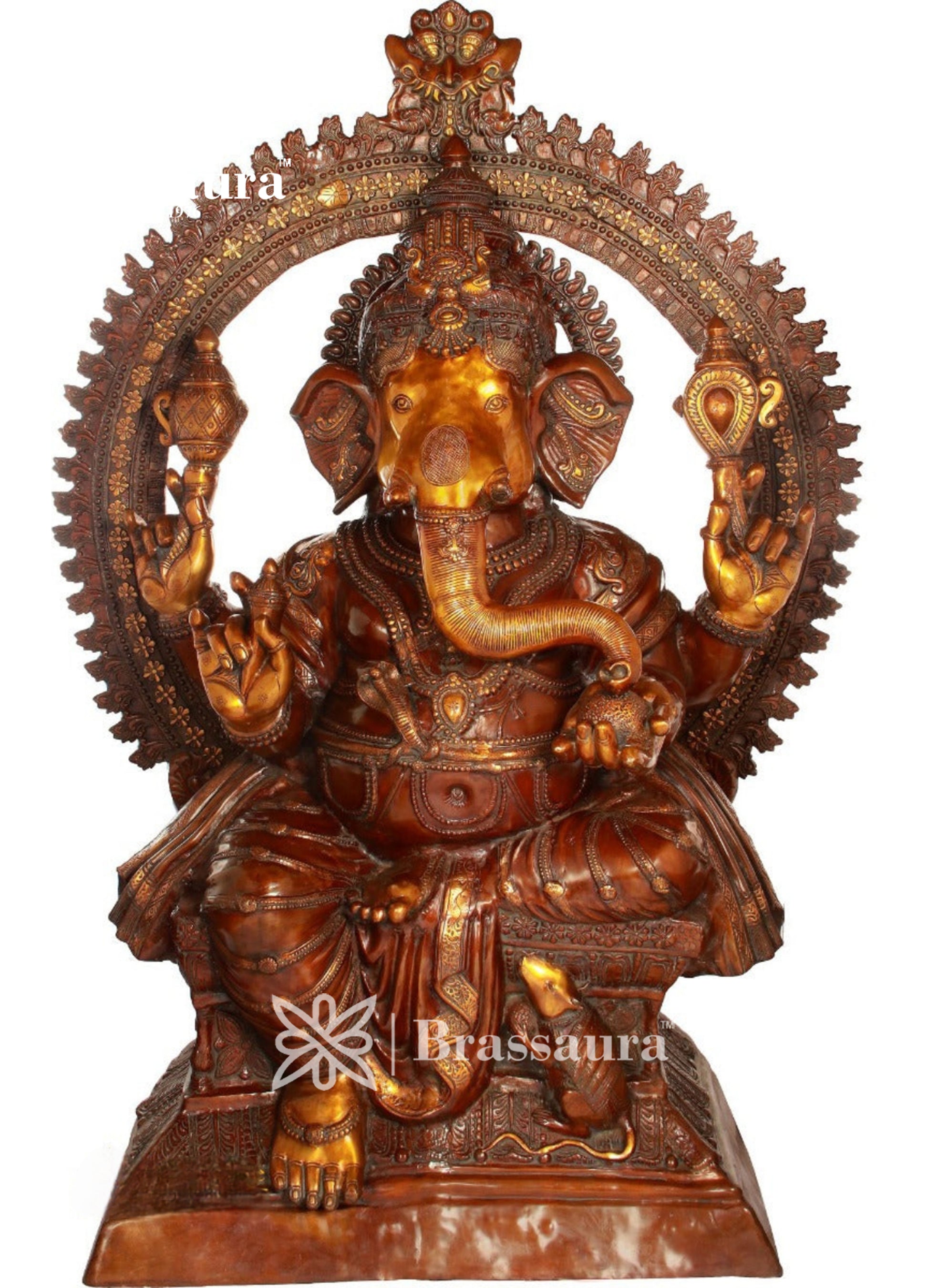 Make a grand spiritual statement with this massive Brass Ganesha Statue, expertly handcrafted to radiate divinity and majesty. Its impressive size and intricate detailing make it a stunning centerpiece for temples, large homes, or ceremonial spaces.