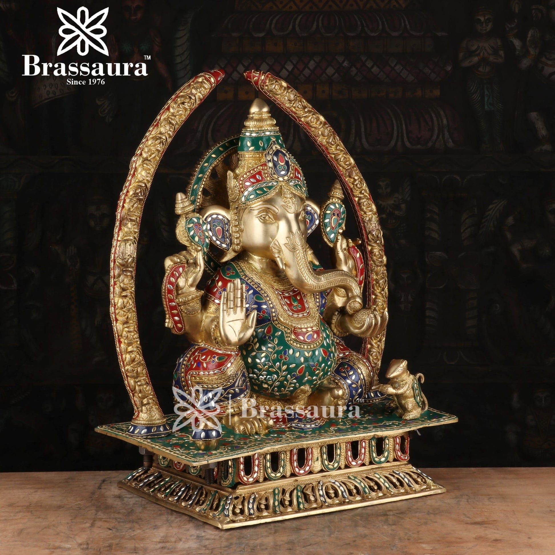 Brassaura™ Brass Ganesha Idol for Home and Decor | Weight 30 Kgs | Height 21 Inches