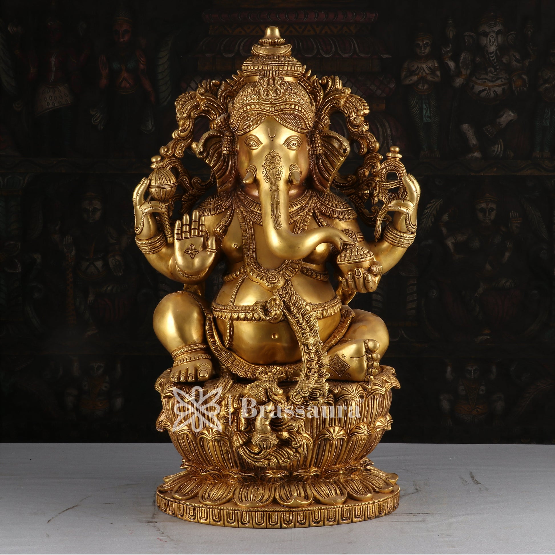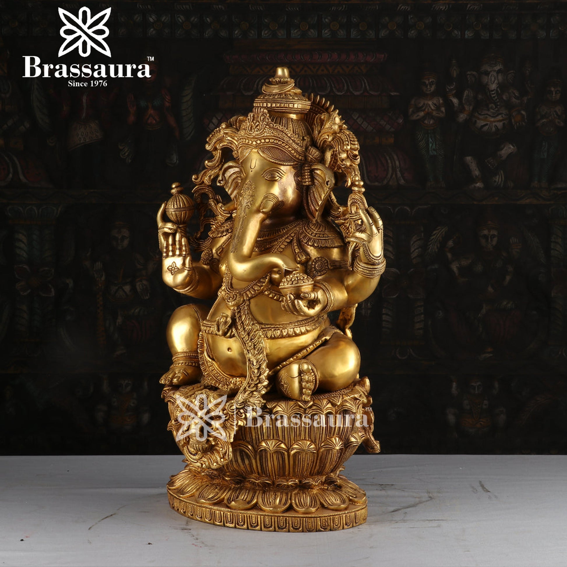 Brassaura™ Brass Ganesha Idol for Home and Decor | Weight 38 Kgs | Height 24 Inches