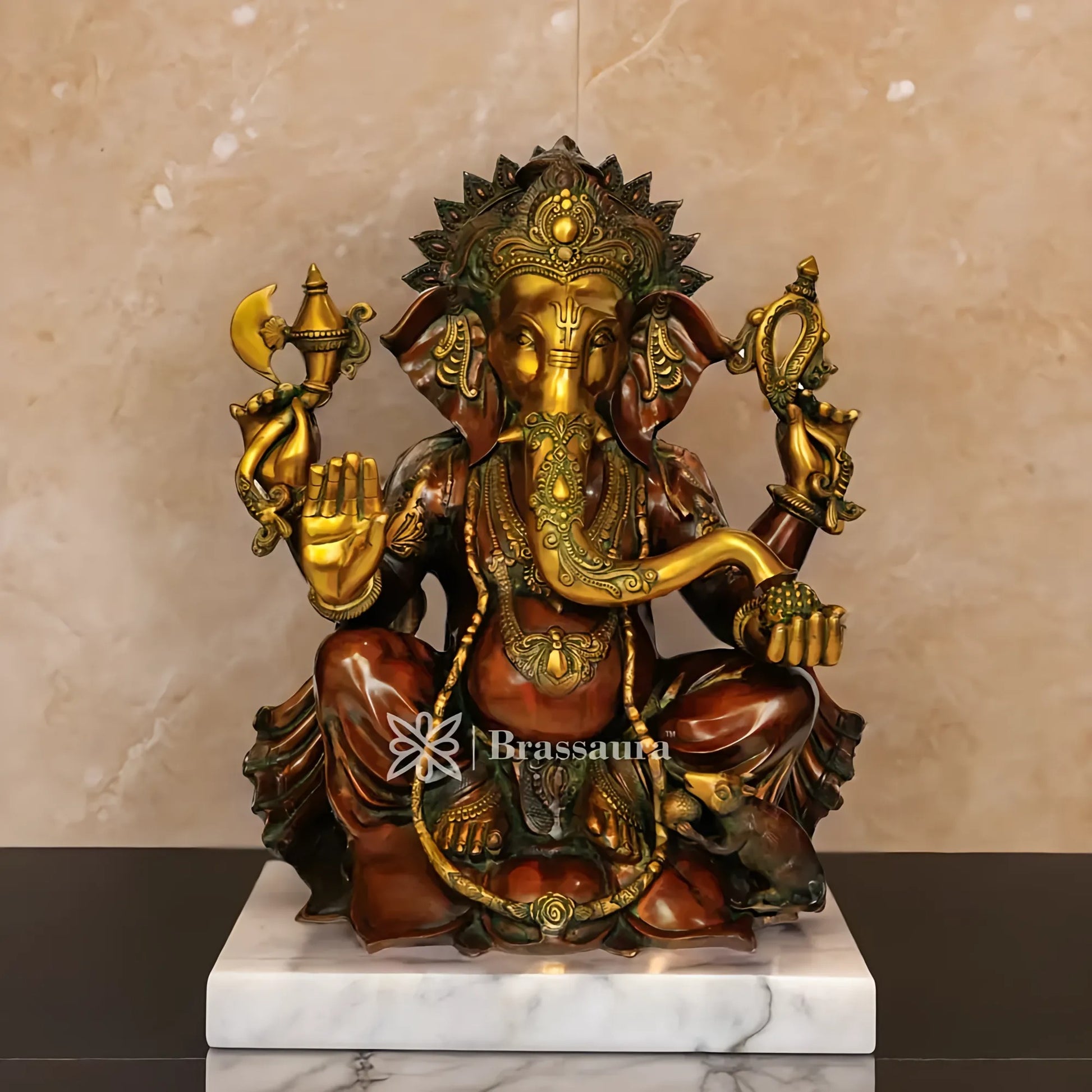 Brassaura™ Brass Ganesha Statue | Height 28 Inches & Weight 55 Kgs