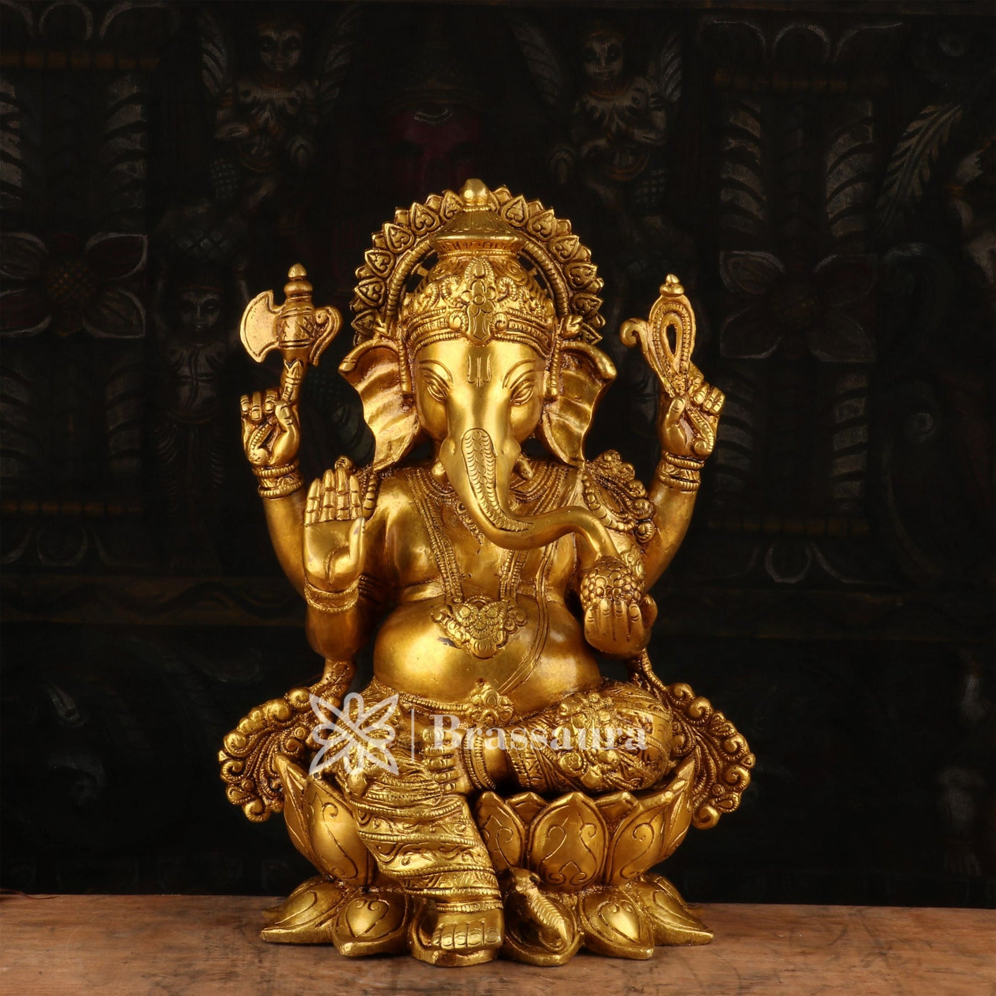 Brassaura™ Brass Jewellery Ganesha Idol for Home and Decor | Weight 7.5 Kgs | Height 13 Inches