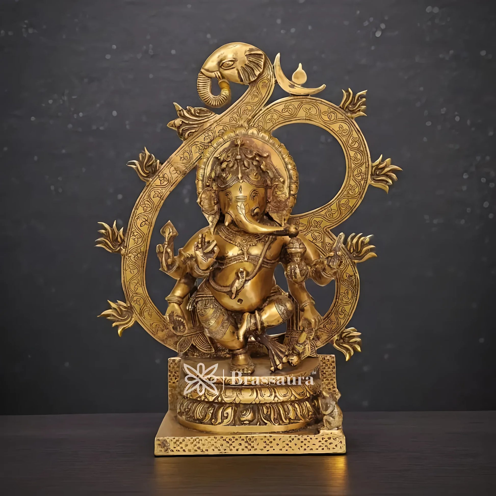 Brassaura™ Brass Ganesha Statue | Handcrafted Vinayaka Idol for Home & Décor | Height 16 Inches & Weight 8 Kgs