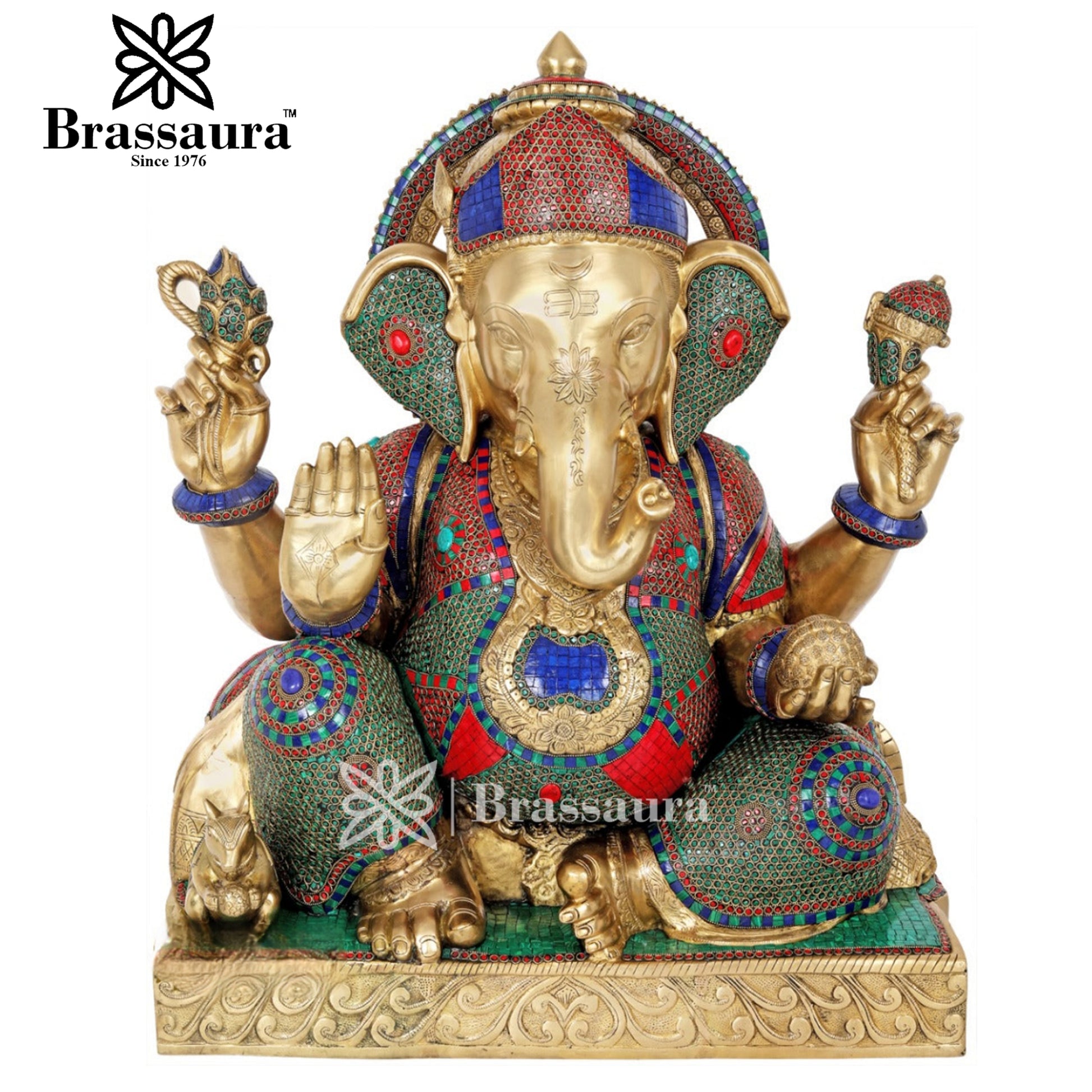 Invite prosperity, wisdom, and positivity into your space with this magnificent Brass Ganesha Statue. Standing 32 inches tall and weighing 85 kg, this expertly handcrafted idol is made from premium quality brass and features exquisite detailing. Lord Ganesha, known as the remover of obstacles and the god of beginnings, makes this statue a perfect centerpiece for temples, home entrances, offices, hotels, or as a luxurious gift for grand occasions.