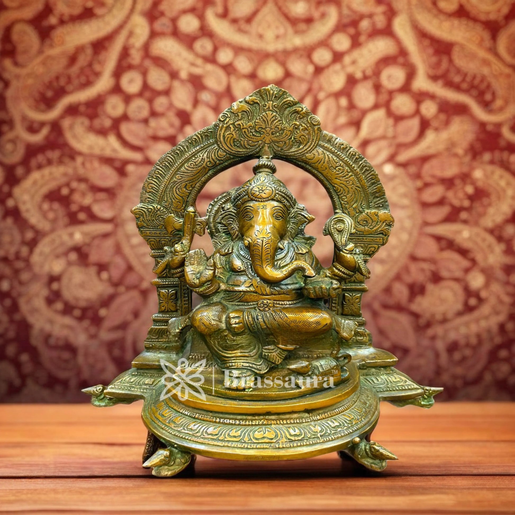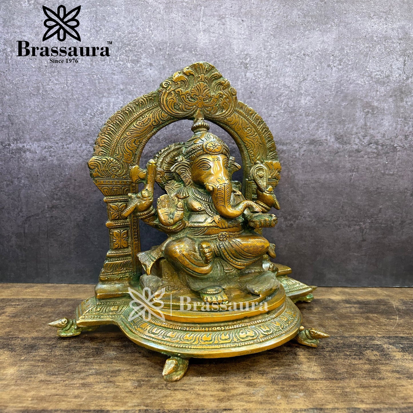 Brassaura™ Brass Ring Ganesha Idol for Home and Decor | Weight 3.9 Kgs | Height 11 Inches