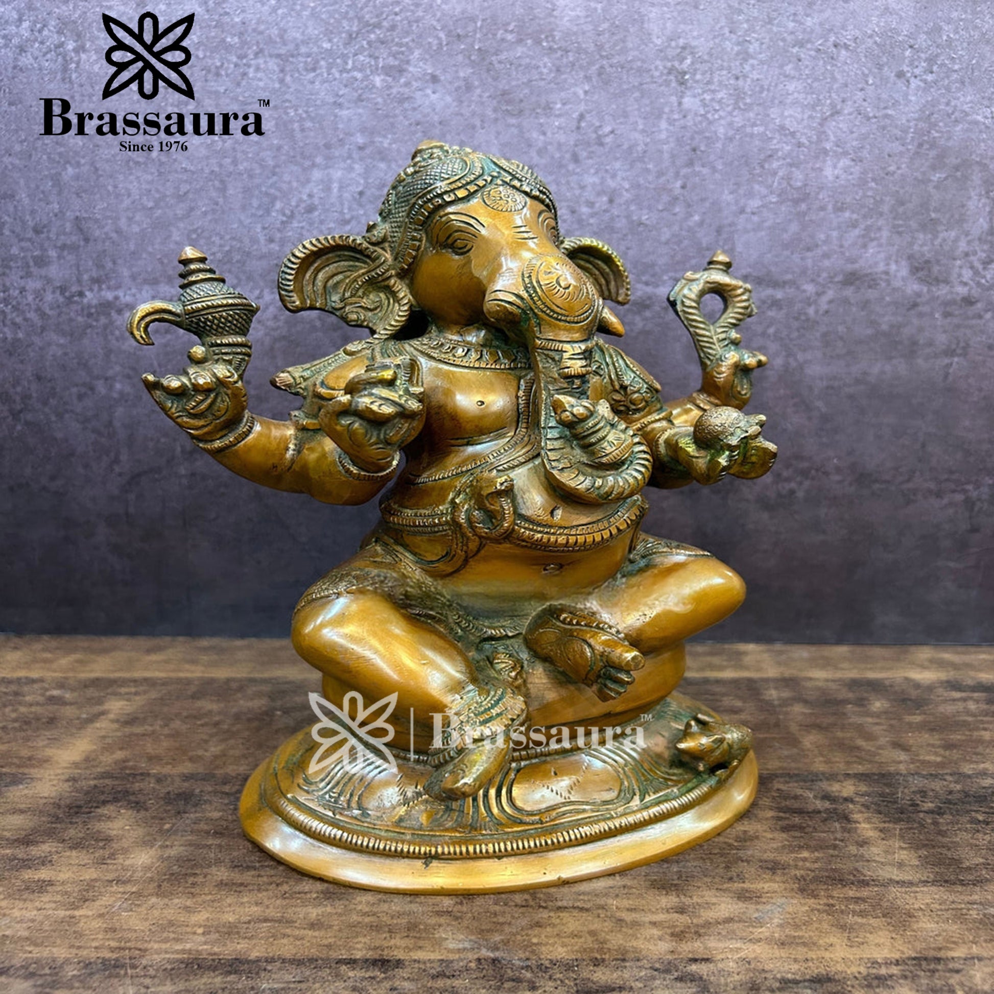 Brass Ganesha Statue For Home Decor And Gift Items Weight 4.3 Kg And Height 9.5 Inches