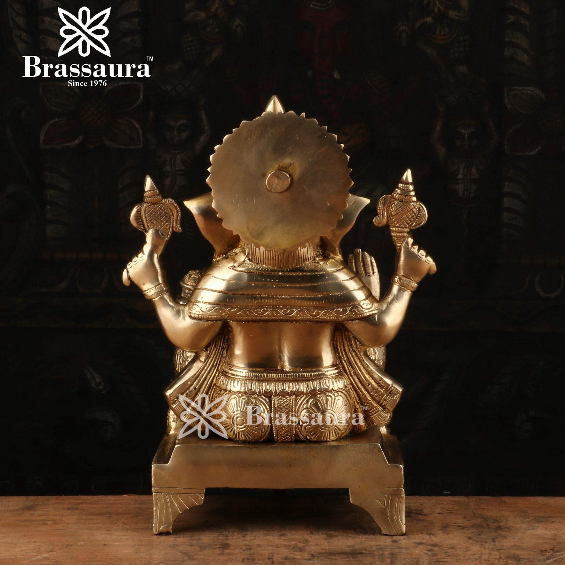 Brassaura™ Brass Chowki Ganesha Idol for Home and Decor | Weight 5.6 Kgs | Height 11 Inches