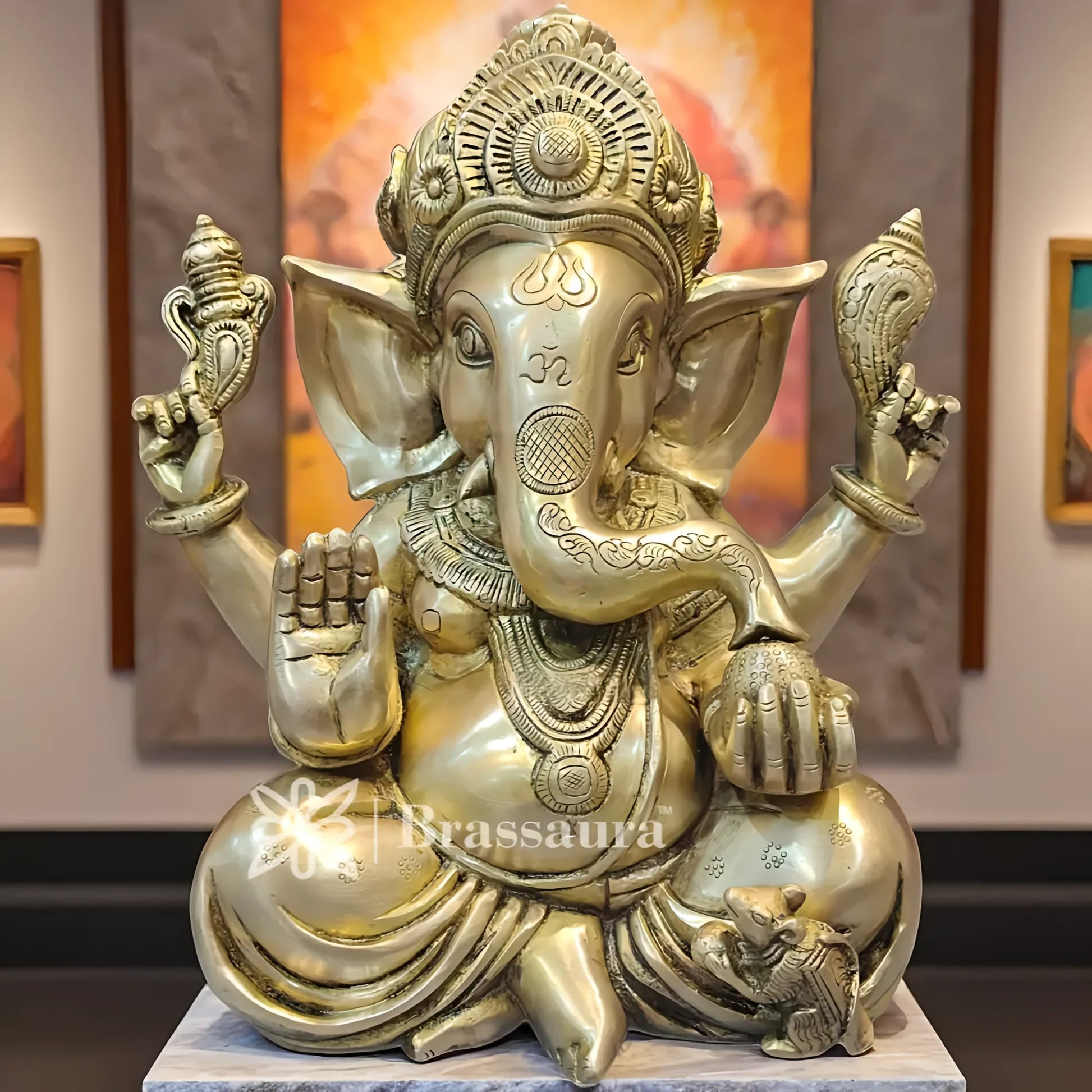 Invite the blessings of Lord Ganesha into your home with this Brass Ganesha Idol. Handcrafted from pure brass with fine detailing, it makes a striking centerpiece for pooja rooms or home décor.
