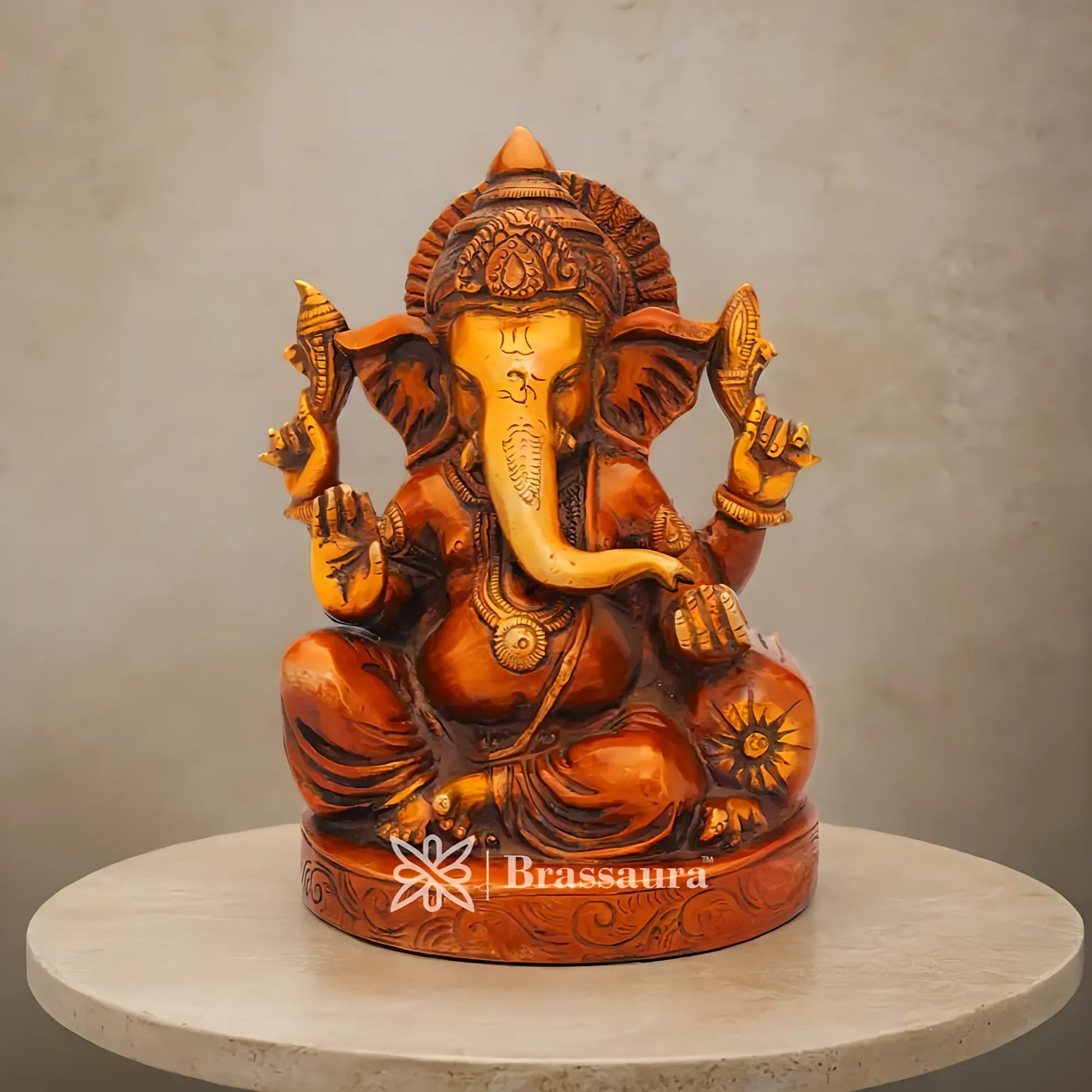 Brassaura™ Brass Ganesha Statue – “Harbinger of Joy” | Height 7 Inches & Weight 2.2 Kgs