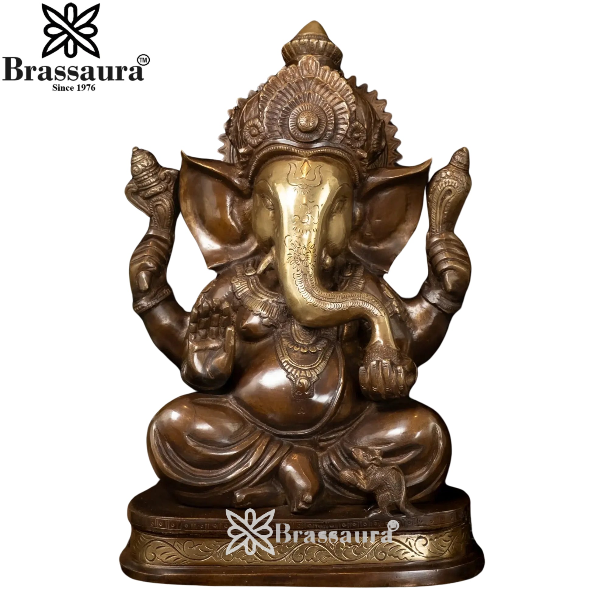 Bring divine grace and spiritual energy into your space with this stunning Brass Ganesha Statue, standing 14 inches tall and weighing 11.5 kg. Lord Ganesha, revered as the remover of obstacles, god of wisdom, and harbinger of prosperity, is magnificently captured in this intricately crafted statue.