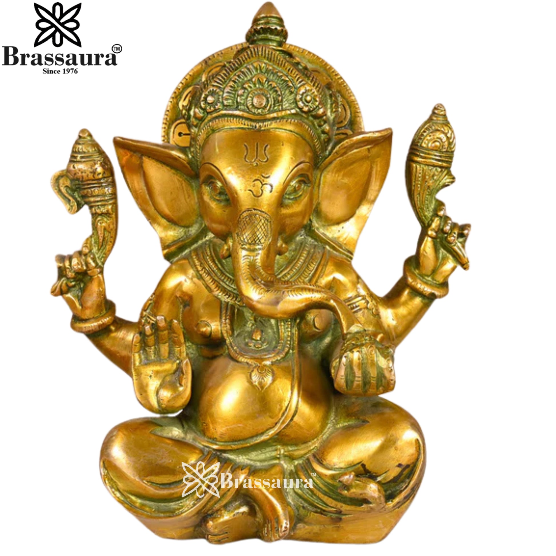Brass Ganesha Statue Weight 3.14 Kg & Height 8 Inch