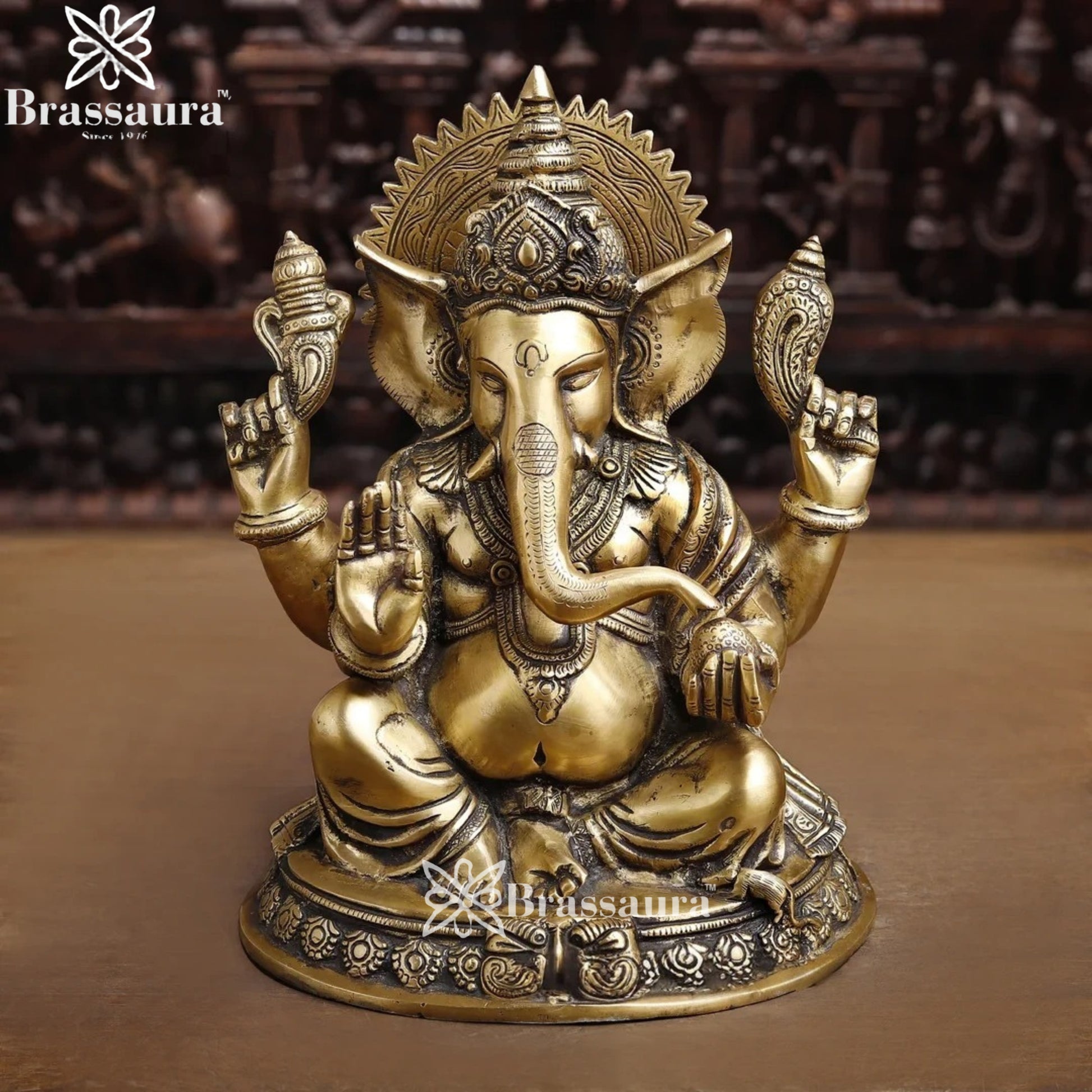 Brass Ganesha Statue – 11.5 Inch | 8.2 Kg