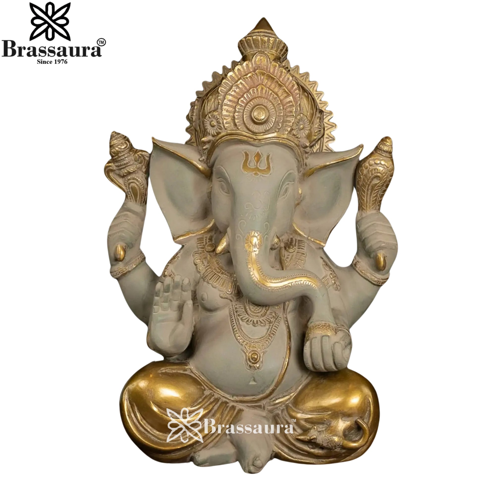 Standing 12 inches tall and weighing 9.3 kg, this handcrafted statue features Lord Ganesha in a traditional seated posture with detailed craftsmanship and a beautiful antique finish. Perfect for home altars, temples, or as a meaningful gift, it brings positive energy and protection to any environment.