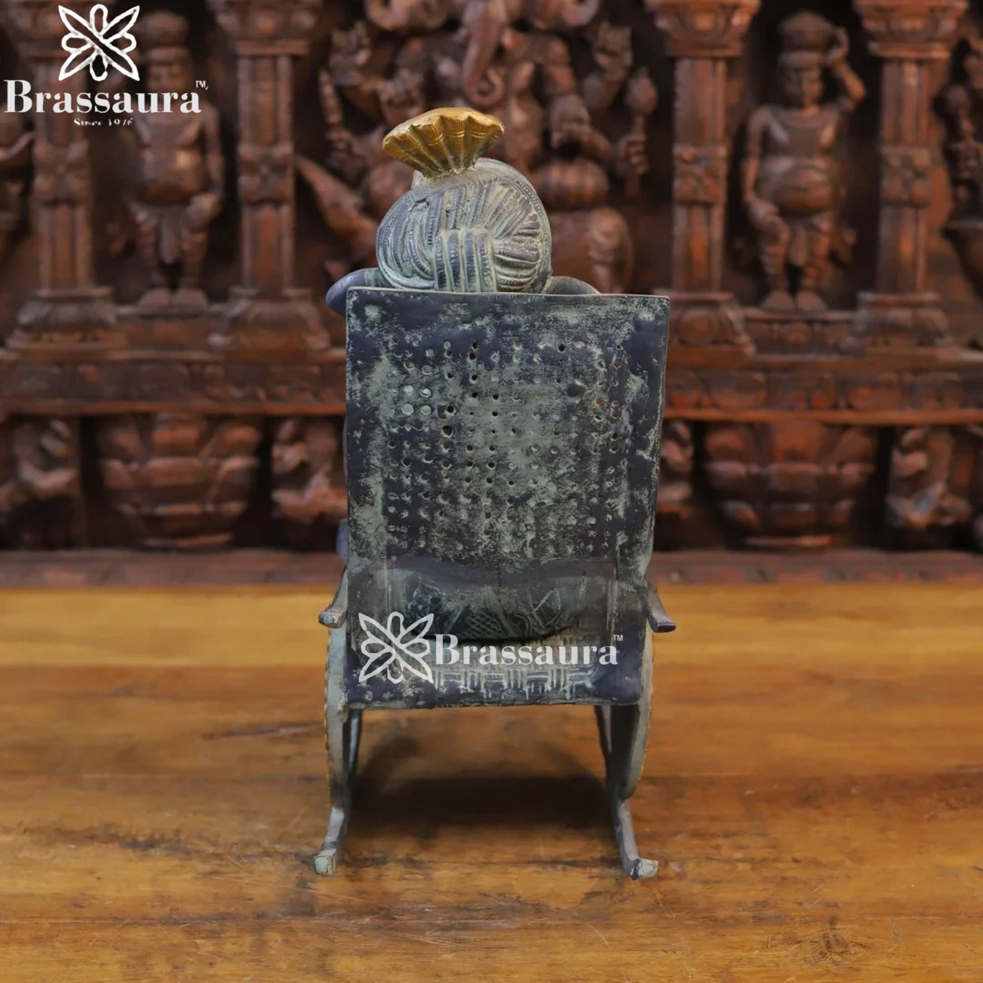 This elegant Brass Ganesha with Chair features Lord Ganesha seated on an intricately designed chair, symbolizing wisdom, strength, and comfort. Crafted from premium brass, this statue brings a regal and serene presence to any space.