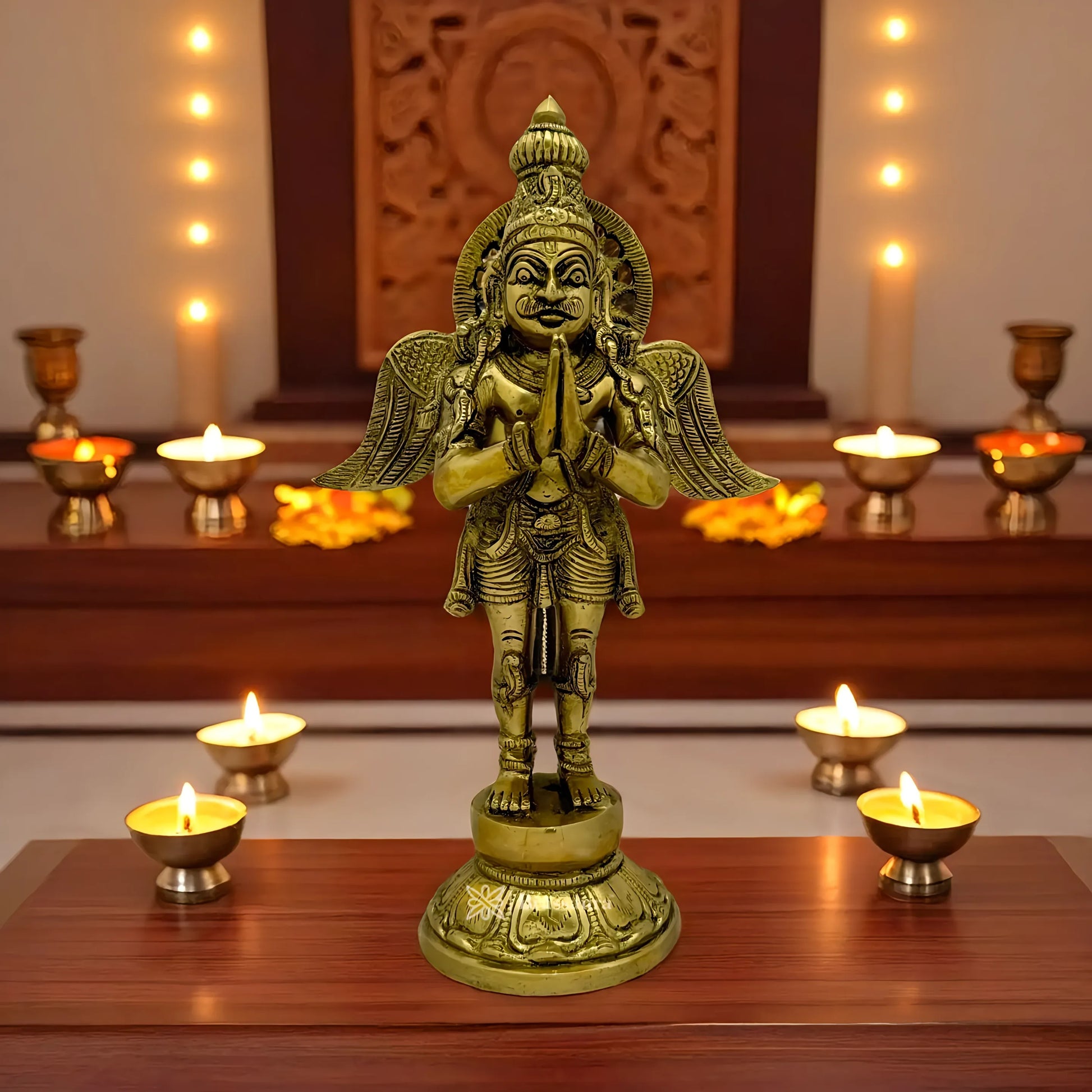 Brassaura™ Brass Garuda Idol – Height 9.2 Inches & Weight 3 Kgs | Meditation & Worship Space Accent