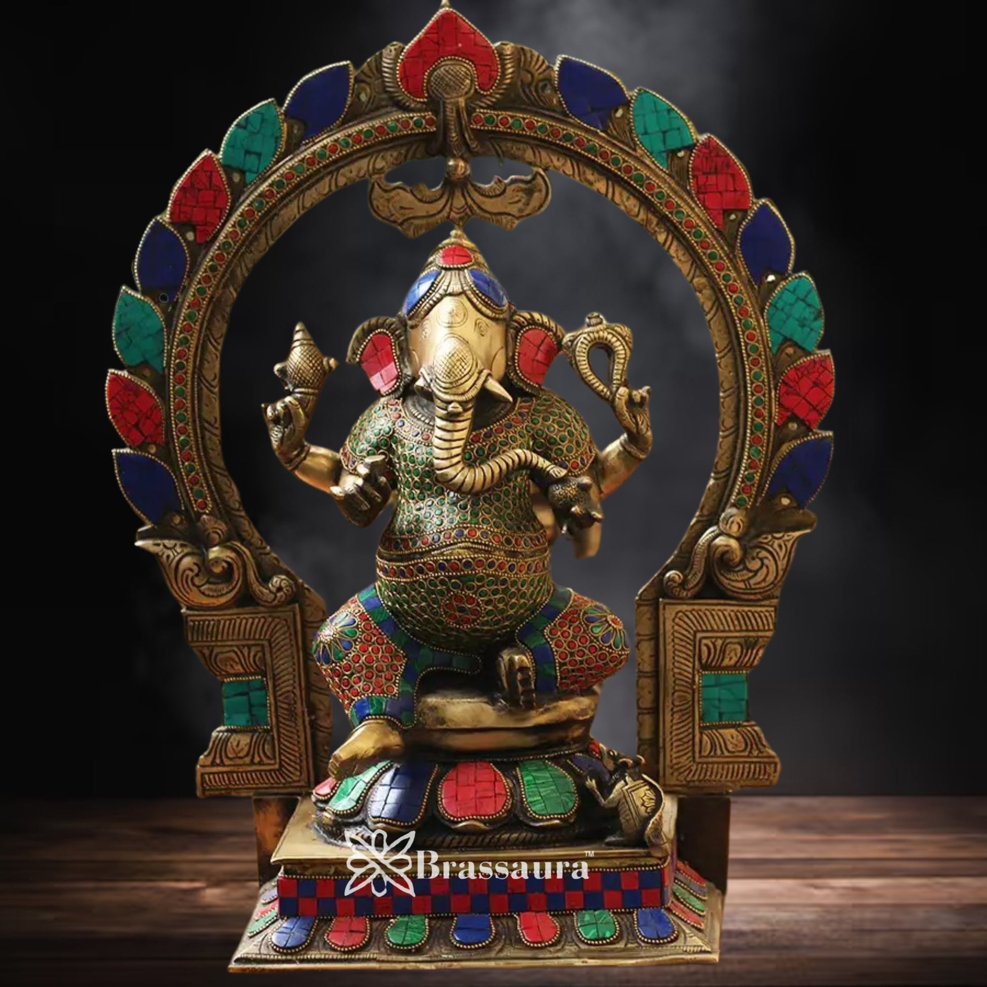 🔹 Design: Ganesha with intricate gemstone embellishments