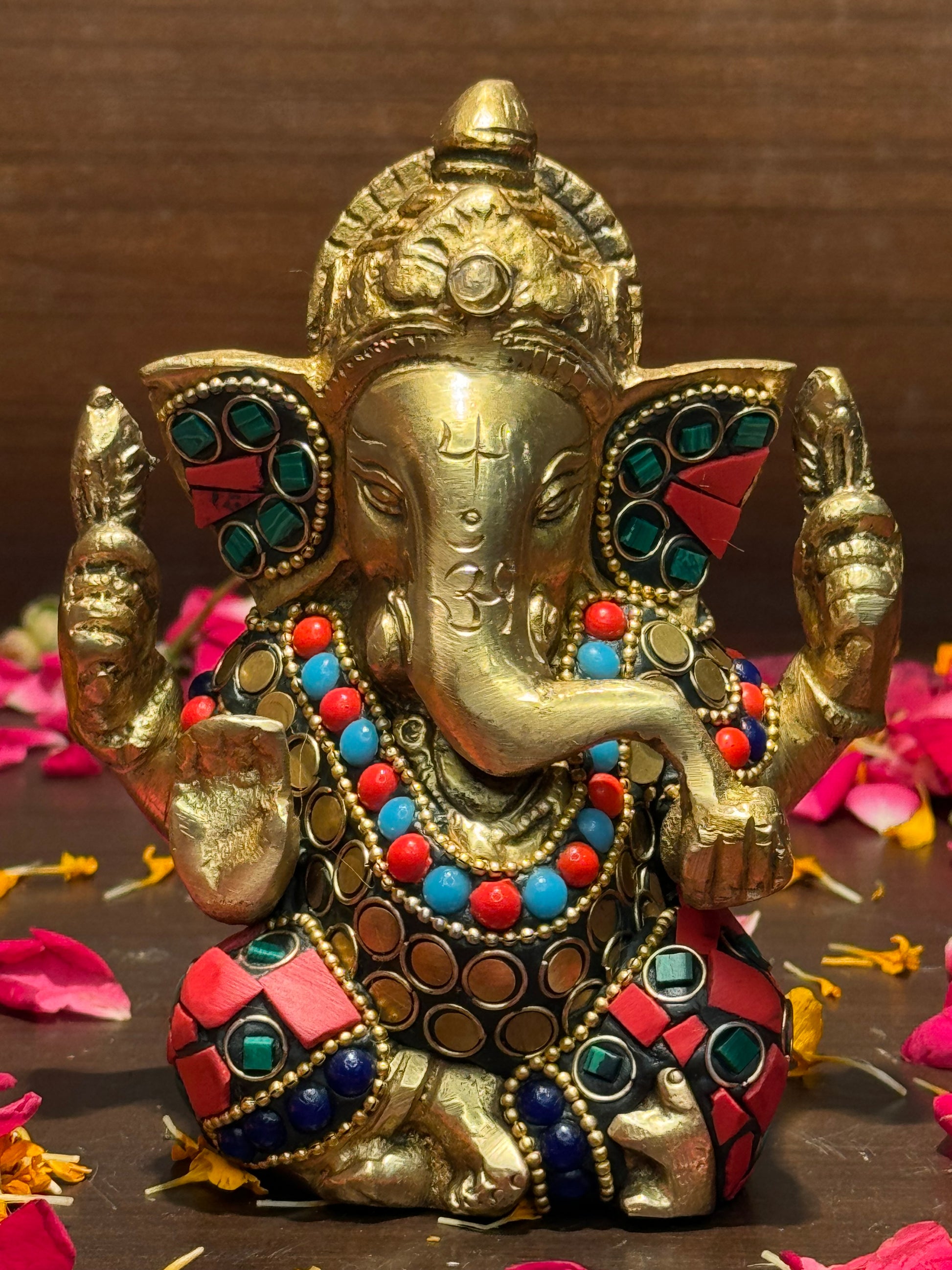 - Material: Pure Brass with Gemstone Inlay