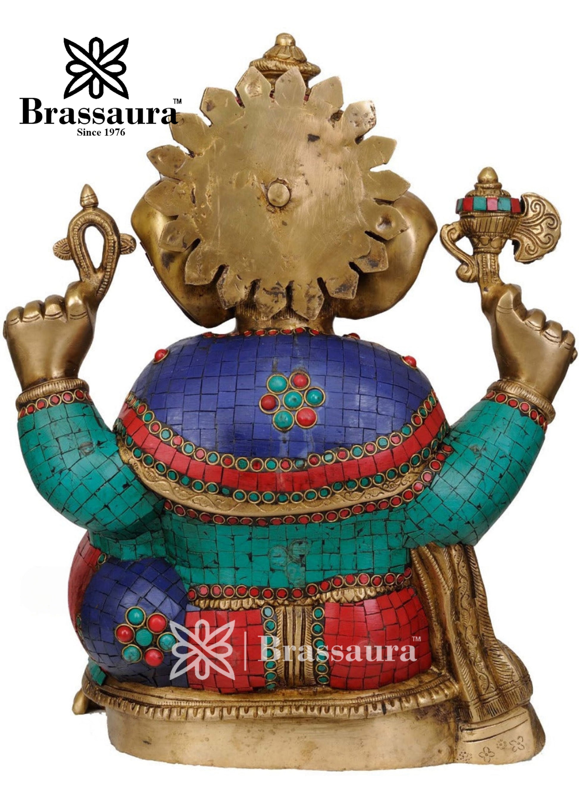 Brass Gem Stone Work Ganesha Statue for Home Decor & Gift | 19 Kg | 18 Inch Height