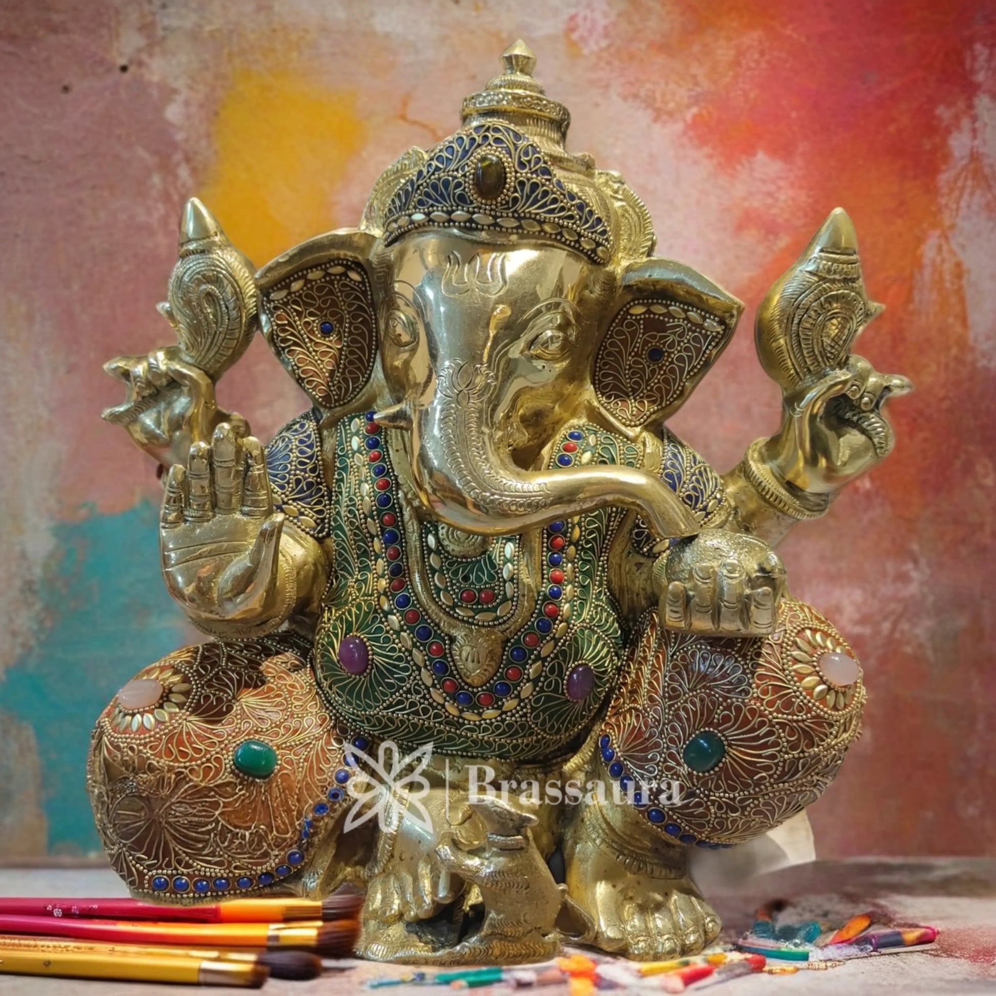 Design: Handcrafted Ganesha with gemstone embellishments