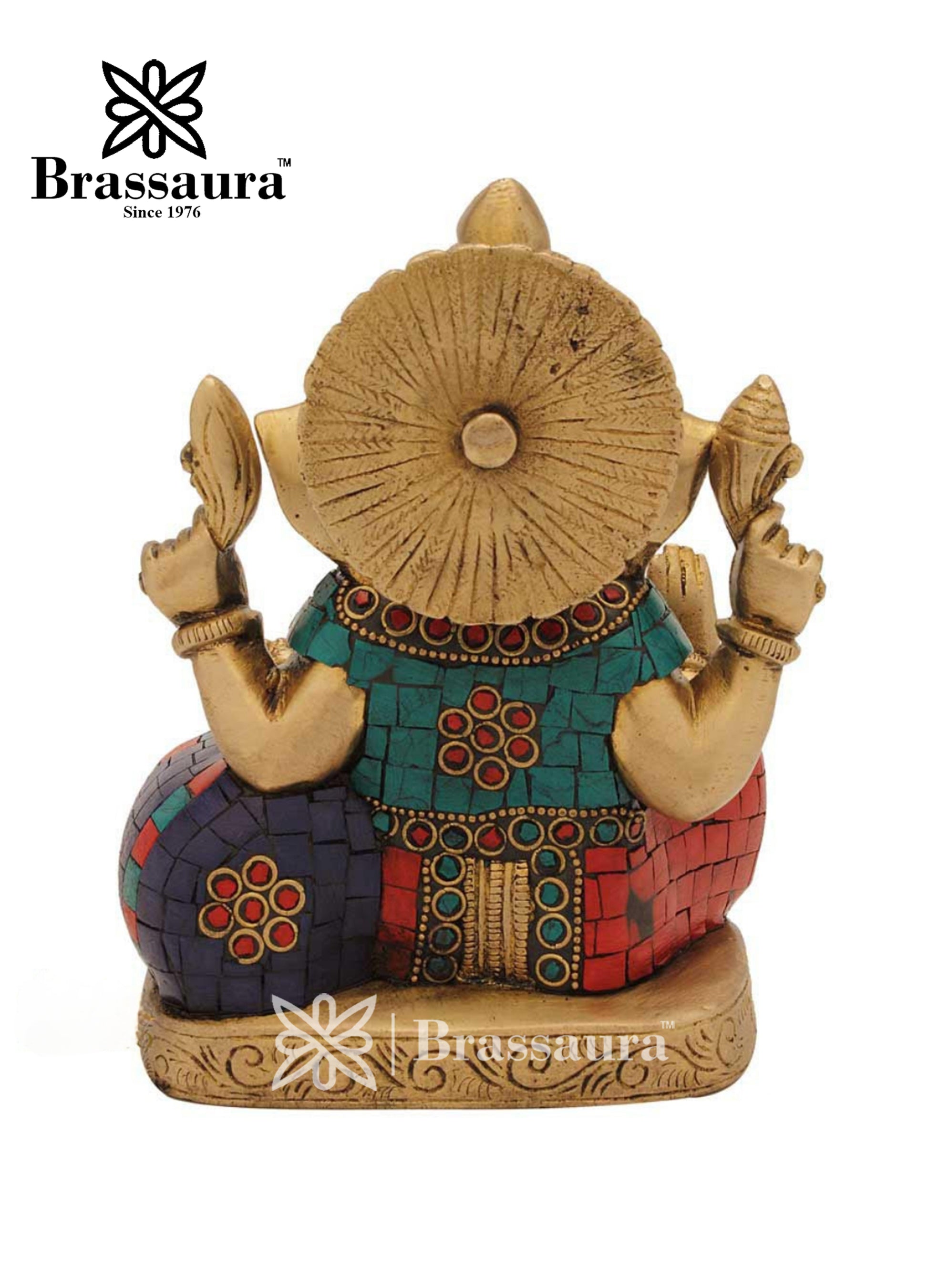 Brass Gemstone Work Lord Ganesha Statue – 2.4 Kg, 6 Inch Height
