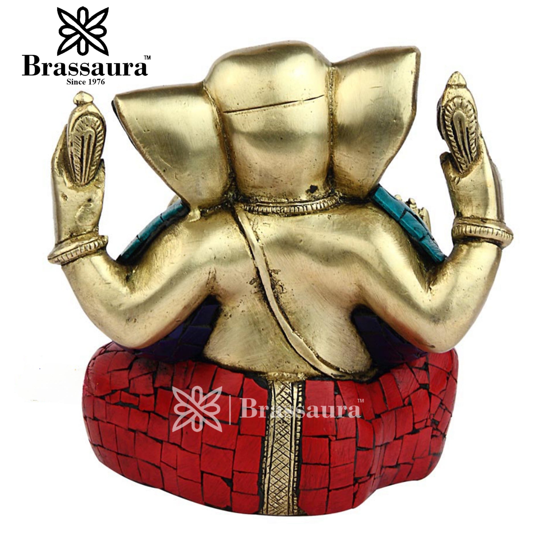 Brass Gemstone Work Lord Ganesha Statue – 2 Kg, 6 Inch Height
