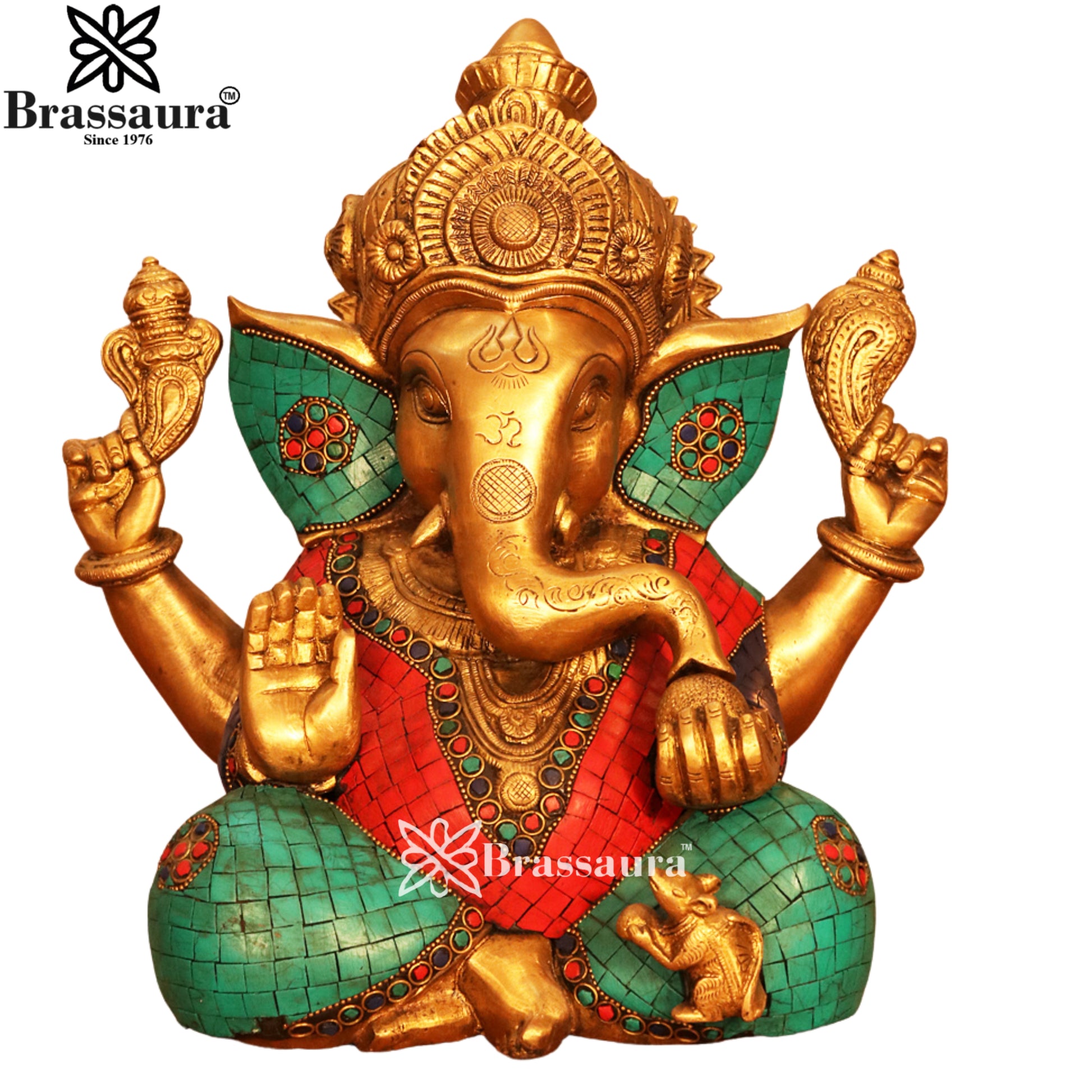 Experience divine artistry and vibrant tradition with this Brass Gemstone Work Ganesha Statue — a radiant symbol of wisdom, prosperity, and protection.