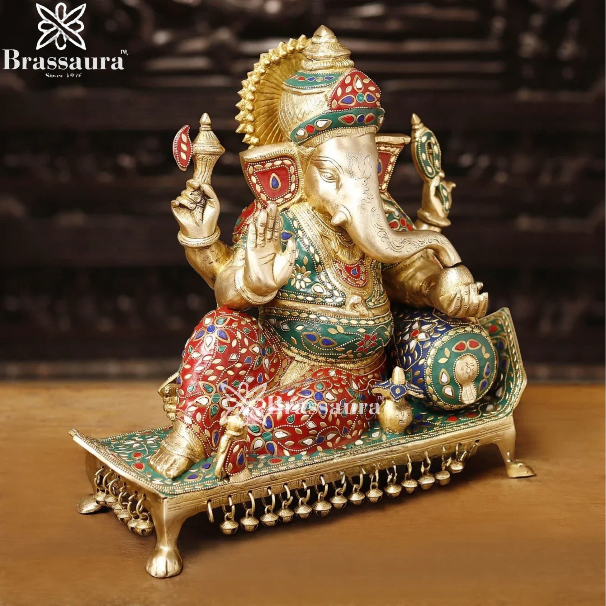 Brass Gemstone Work Ganesha – 15.5 Inch | 16 Kg
