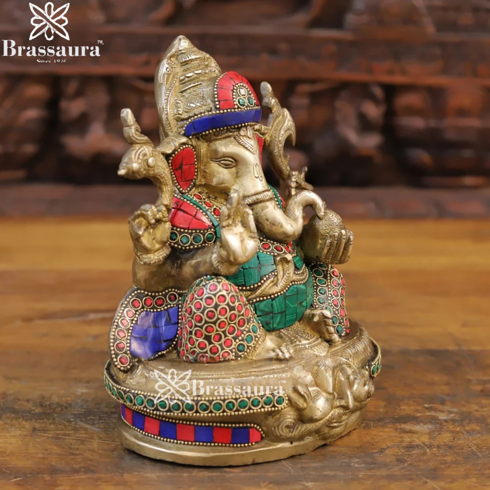 Brass Gem Stone Work Ganesha – 8.5 Inch | 3.6 Kg