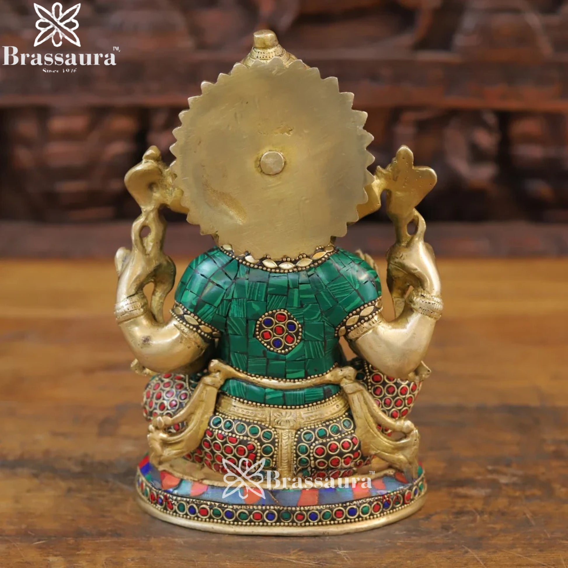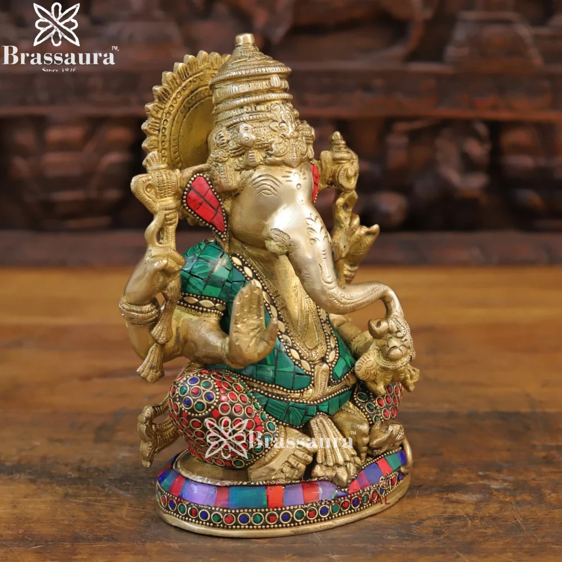 Brass Gem Stone Work Ganesha – 9.5 Inch | 4.14 Kg