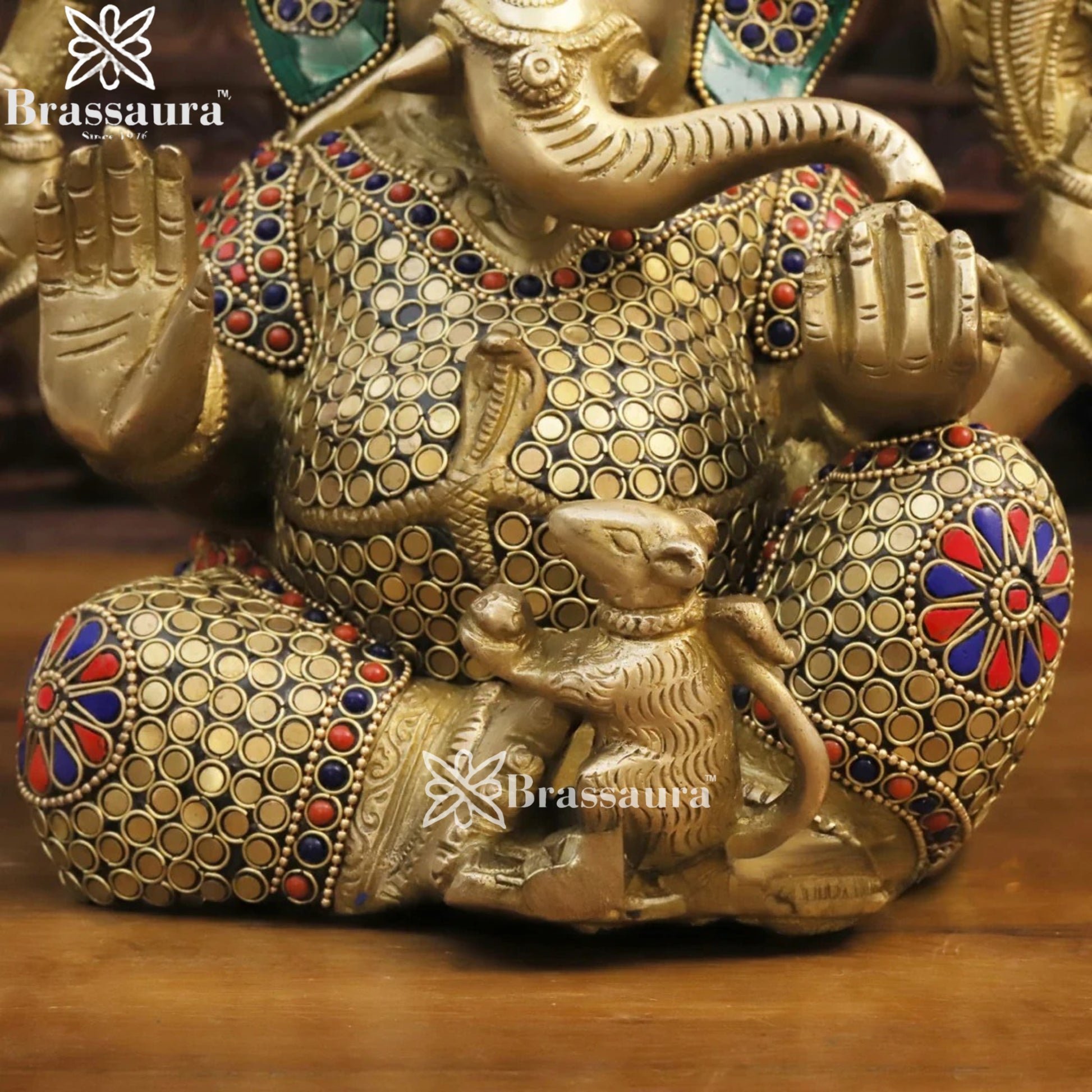 Brass Gem Stone Work Ganesha Statue – 12 Inch | 9 Kg