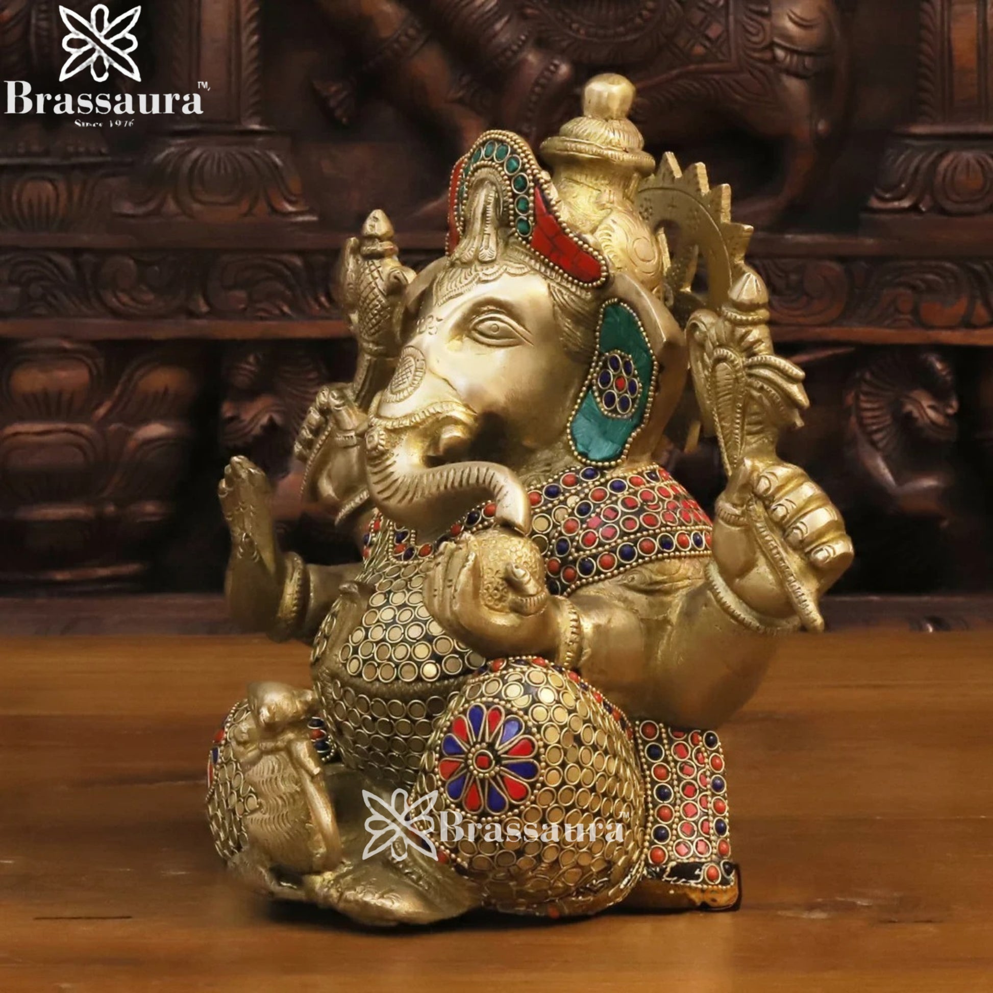 Brass Gem Stone Work Ganesha Weight 9 Kg & Height 12 Inch