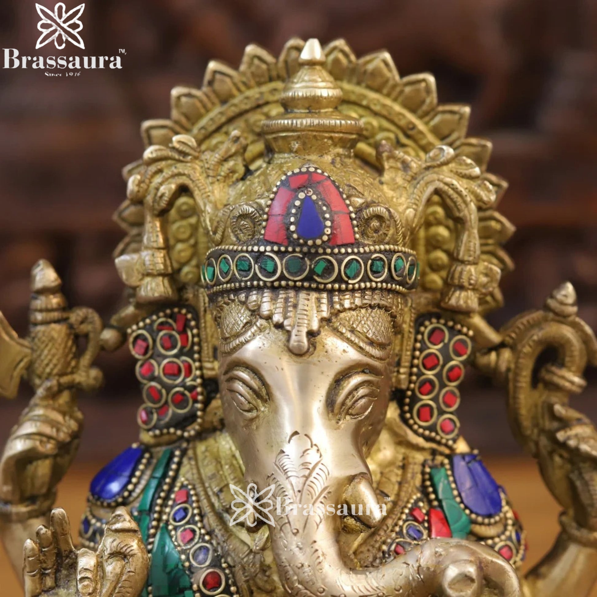 🔹 Material: Solid Brass with Intricate Gemstone Inlay