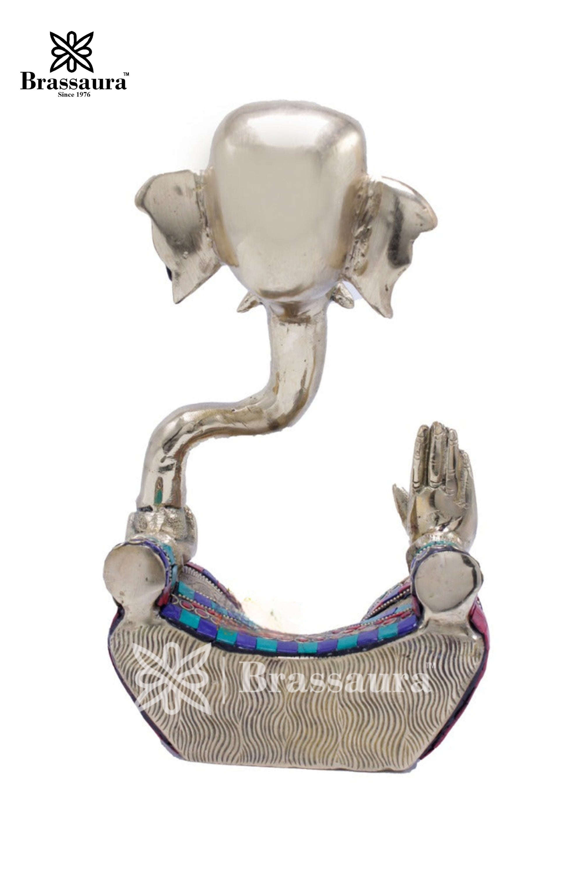 Brassaura™ Brass Gem Stone Work Ganesha Idol for Home and Decor | Weight 4.1 Kgs | Height 12 Inches