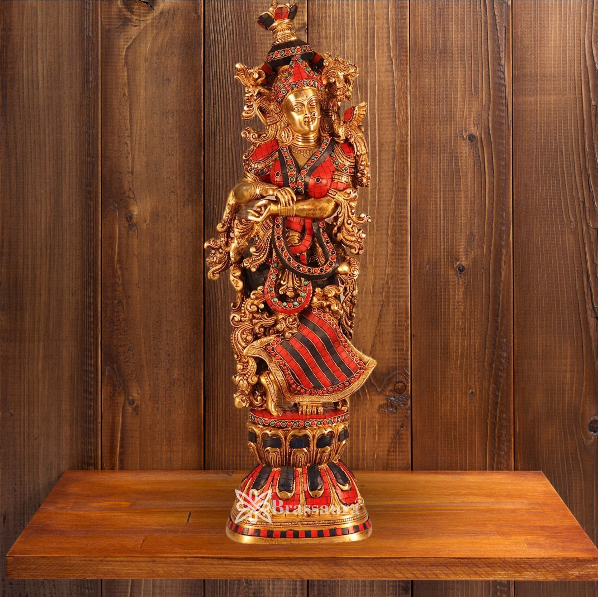 Brass Gemstone Work Murli Dhari Krishna Murti