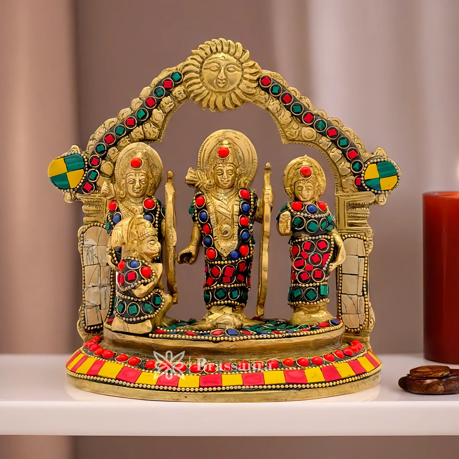 Brassaura™ Brass Gem Stone Work Ram Darbar Idol – Height 7 Inches & Weight 1.9 Kgs | Traditional Craftsmanship for Temple Ambience